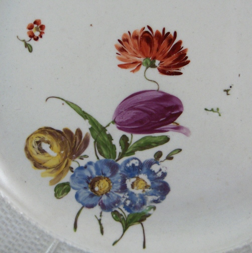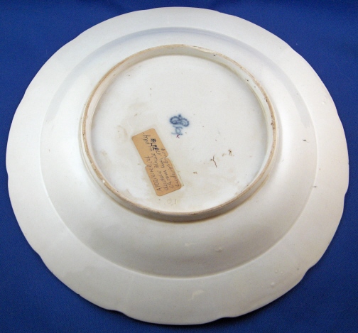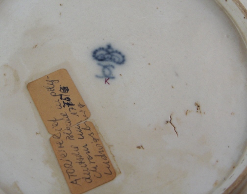 This is a plate made by Ludwigsburg between 1759 and 1770 and is marked with the CC mark under the crown in underglaze blue. Impressed number 19 as well as 1c by the footring. Also a painters mark of a puce letter K. The plate is 1.25 inches tall and 9.25 inches in diameter. It is handpainted with flowers and has the basketweave rim called the Osier relief decor typical of that period. Reddish brown trim. It is in good condition with wear to the enamel of the flowers and two tiny fleabites to the edge. Please email me for more information or photos.