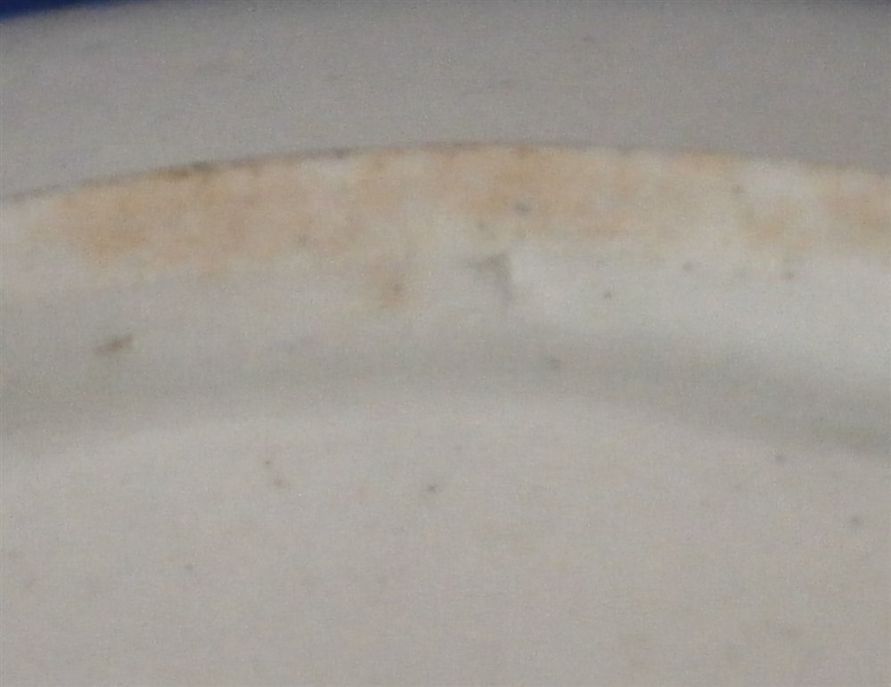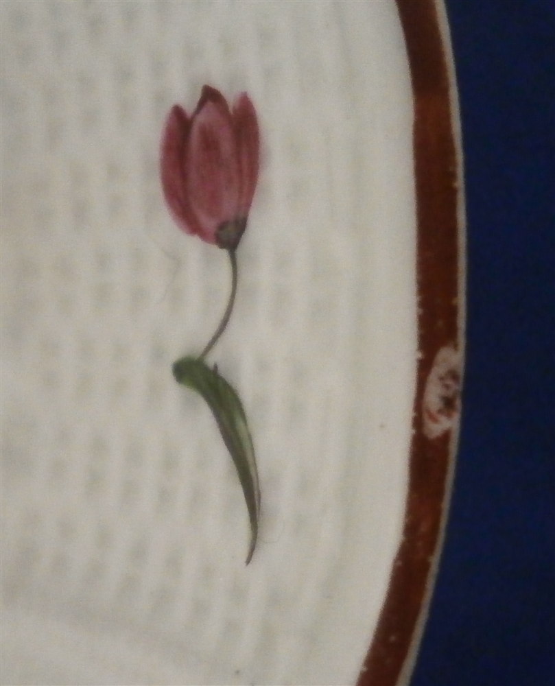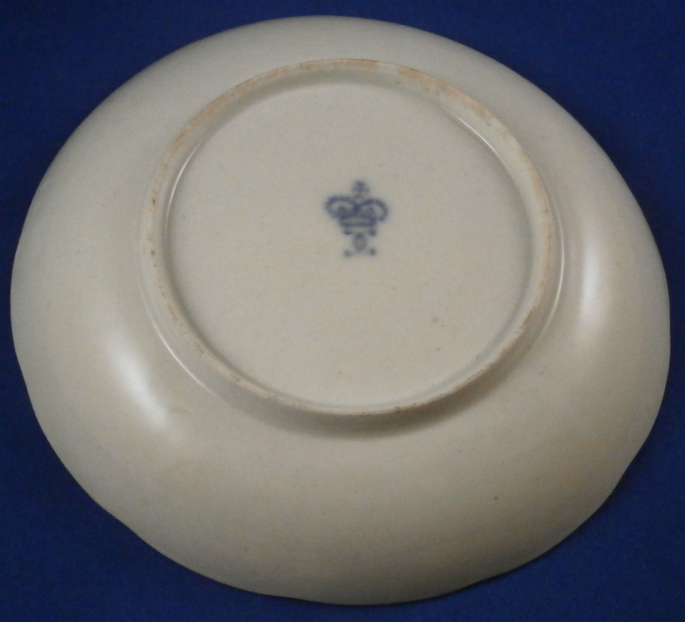 This is a saucer made by Ludwigsburg. It was made between 1759 and 1770 and is marked with the CC mark under the crown in underglaze blue. Handpainted with flowers and a reddish brown trim. It has the basket weave design from the rim about an inch down. The saucer is 1 inch tall and 5.25 inches in diameter. It is in great condition with one mini flat chip on the rim. A tiny bit of wear to one flower. Please email me for more information or photos.