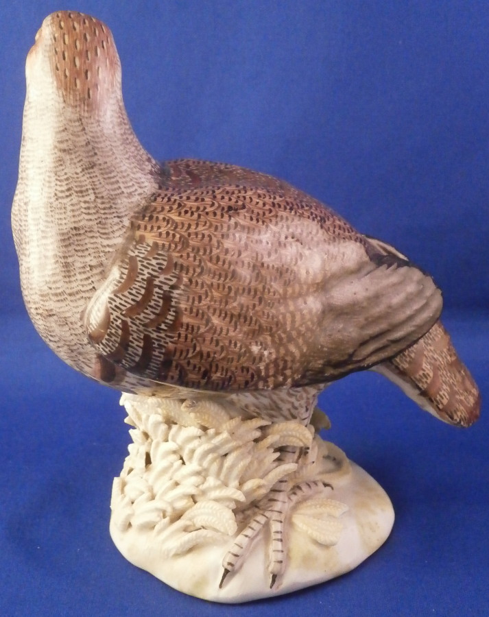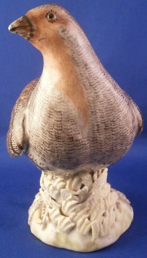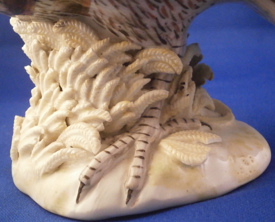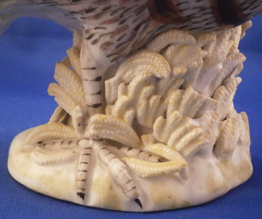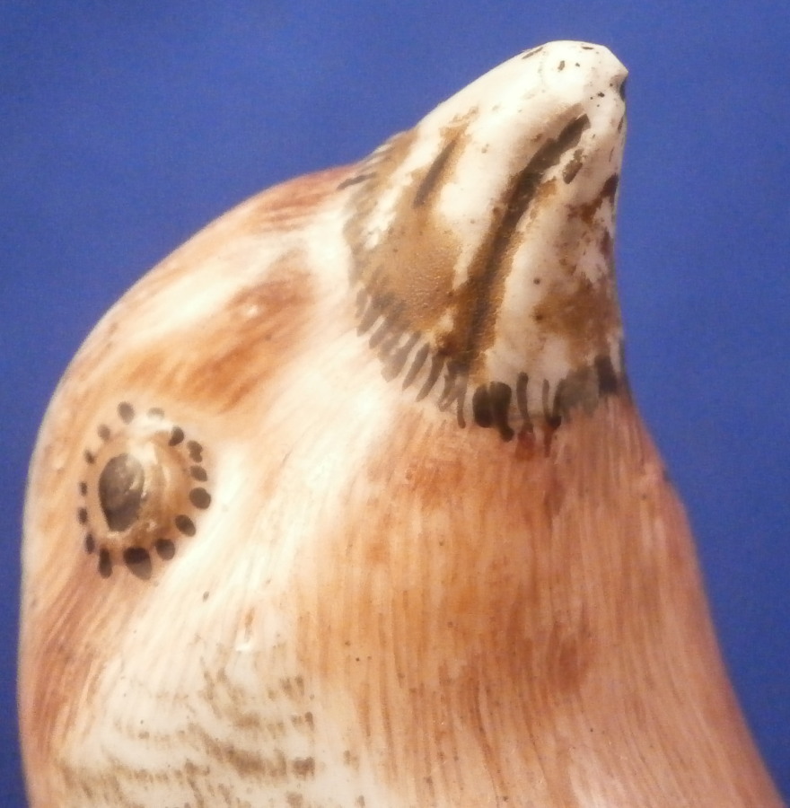 This is a great bird figurine made by Meissen in the 1740s so as early as they come for this model. It is not one you see often and for some reason every time it does come up for auction it goes for over 5K so definitely a popular piece. It is superbly modeled and hand painted to perfection with lots of detail. It is standing on a fairly simple base with some applied green patches and lots of applied wheat sheaves that looks really nice. The bird itself has tons of detail to the feathers that make it look really nice. The early bird figurines are rather hard to come by. The figurine is in great condition with some chips to the wheat sheaves, a couple of minor spots of wear and the beak has the very tip chipped a bit - the splotchy looking beak is actually mostly light grey with some nice black details to it as I just found it - it is filthy. I thought it was because of wear but it is just dirt from 250 plus years. I cleaned it off now - Sorry. And with that the tiny chip to the tip is not very obvious at all anymore. The piece displays very nicely! It is not marked underneath which is not unusual for these early pieces as the undersides were unglazed. The figure is 6 inches tall, 3.25 inches wide and 5 inches deep. Please email me for more information or other pictures.