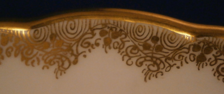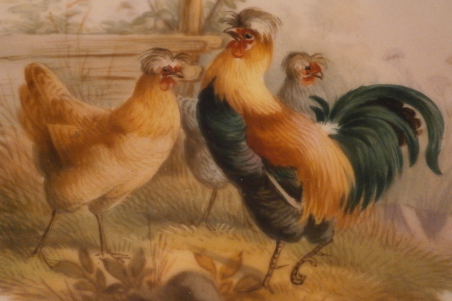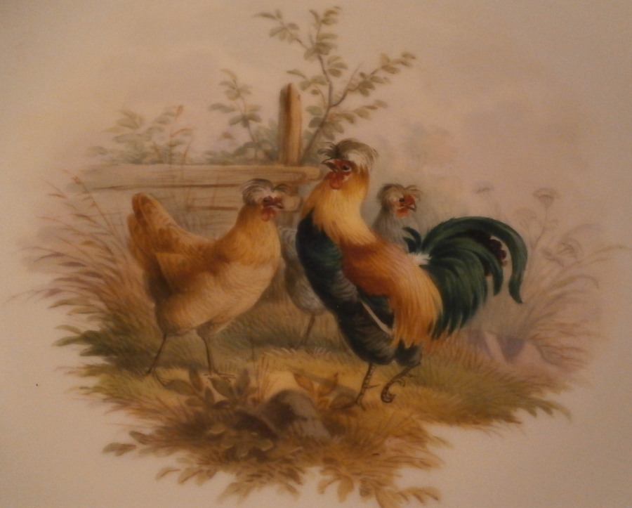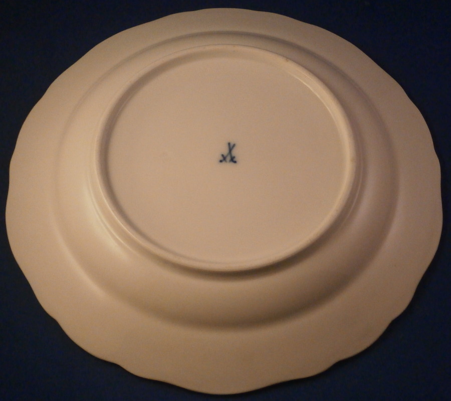 This is a great plate made by Meissen in the mid to late 19th century. It is hand painted with a superb chicken scene in the center including a rooster and two hens in a nice landscape surrounding. The rim has one of their nicer fancy gold trims to it. This type of gold trim is more common on cobalt ground pieces they made. The edge is a bit wavy rather than just plain round which adds to the piece. It looks stunning on display! The plate is marked with the under glaze blue crossed swords mark underneath as well as the usual impressed numbers. An old Sotheby's sticker which I chose not to remove but could easily be done if one wishes to do so. It is about 1.125 inches tall and 8.25 inches in diameter. It is in perfect condition. There is a stray gold line to the underside as shown. Please email me for more information or other pictures.