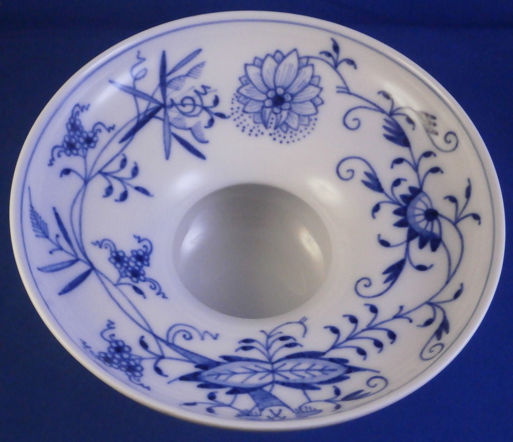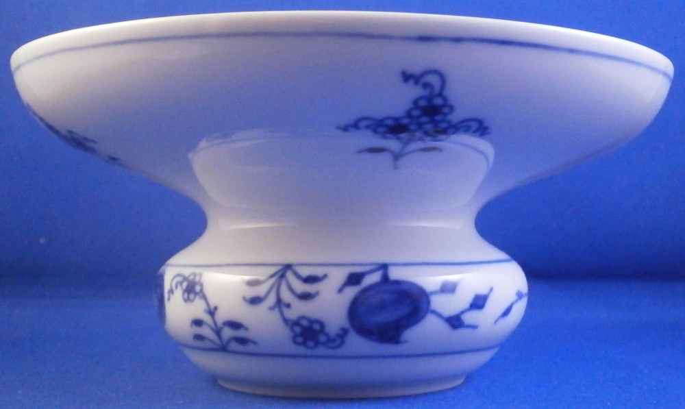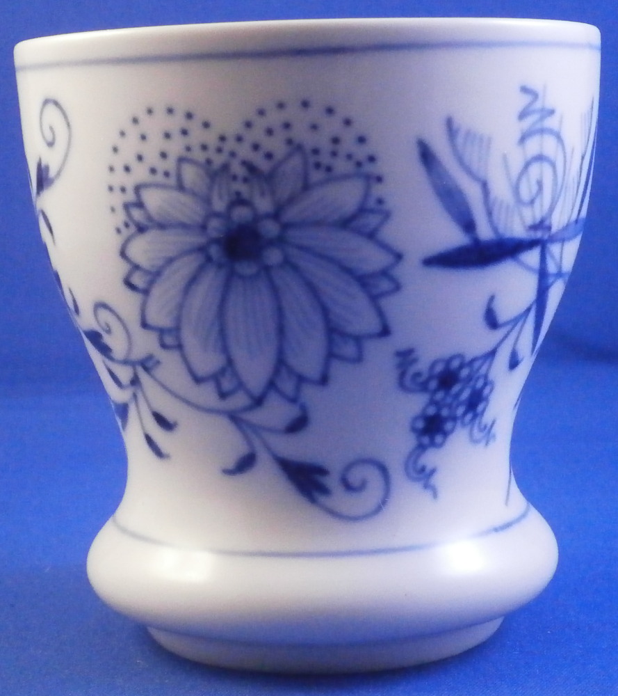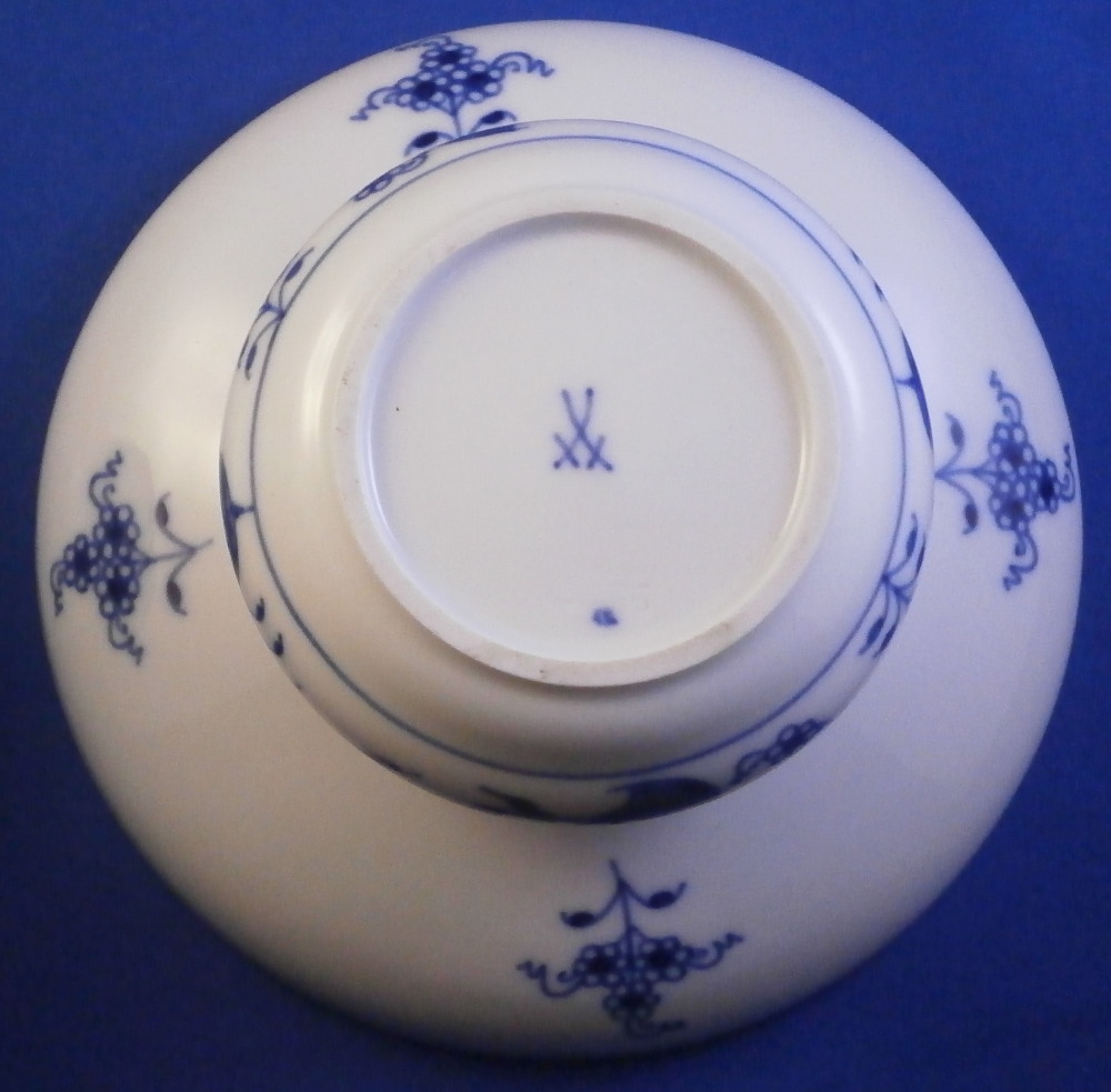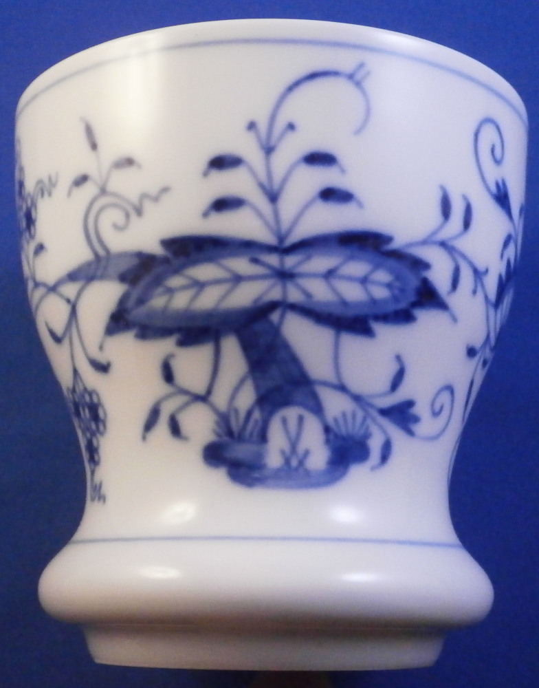 This is a very hard to find piece of blue onion - a spittoon including a rare rinsing cup made by Meissen in the 20th century. Both are decorated with their famous Zwiebelmuster design in under glaze blue and have nice shape to them. The spittoon has the larger top bowl with the central opening going into the smaller bottom bowl part like a funnel. The top inside part has the typical blue onion design to it with the crossed swords mark to the stalk and the outside has some nice designs to it as well. The cup has a bottom made to fit into the opening of the spittoon and is decorated all around with the blue onion design and also has the crossed swords in the stalk part. The combo I ahve never come across and it's really nice! Both are marked underneath with the under glaze blue crossed swords as well as the usual other blue marks and impressed numbers, etc. as shown. The spitton is 2.75 inches tall with a top diameter of just under 6 inches. The beaker / cup is 3.25 inches tall with a top diameter of 3.25 inches. Both are in perfect condition. Please email me for more information or other pictures.