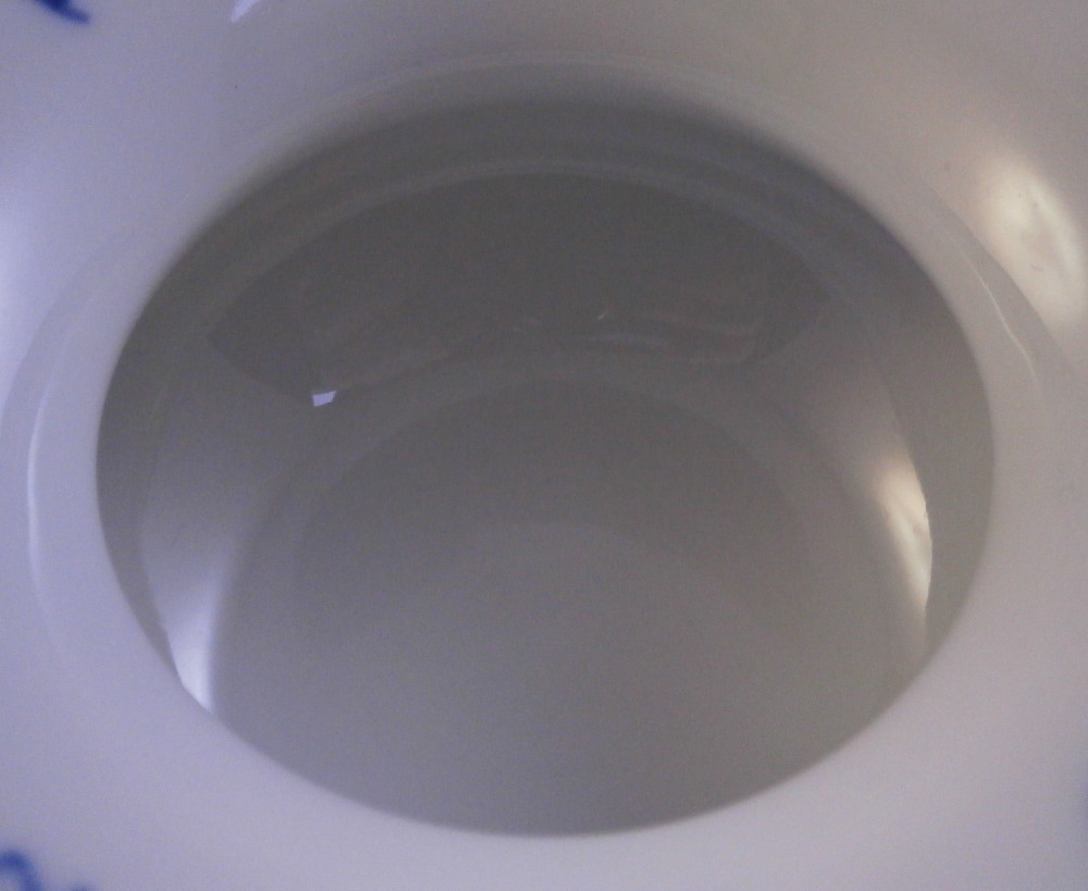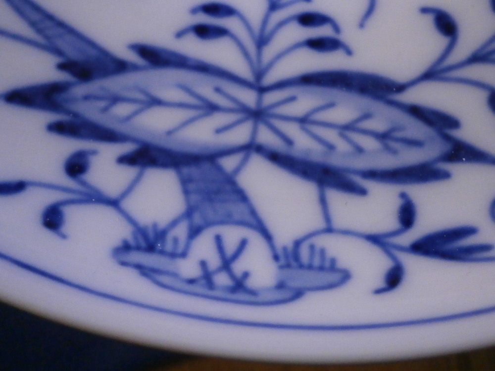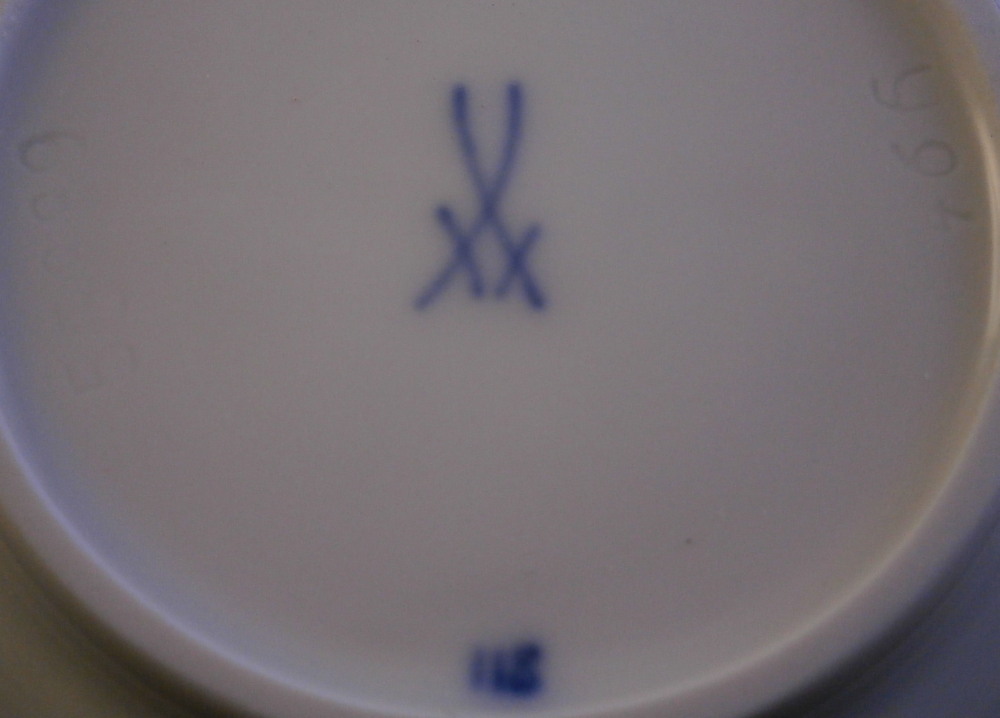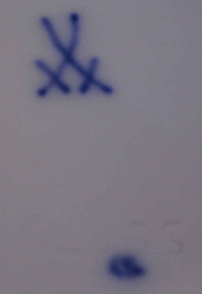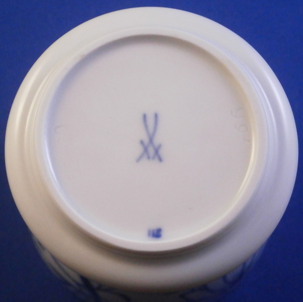 This is a very hard to find piece of blue onion - a spittoon including a rare rinsing cup made by Meissen in the 20th century. Both are decorated with their famous Zwiebelmuster design in under glaze blue and have nice shape to them. The spittoon has the larger top bowl with the central opening going into the smaller bottom bowl part like a funnel. The top inside part has the typical blue onion design to it with the crossed swords mark to the stalk and the outside has some nice designs to it as well. The cup has a bottom made to fit into the opening of the spittoon and is decorated all around with the blue onion design and also has the crossed swords in the stalk part. The combo I ahve never come across and it's really nice! Both are marked underneath with the under glaze blue crossed swords as well as the usual other blue marks and impressed numbers, etc. as shown. The spitton is 2.75 inches tall with a top diameter of just under 6 inches. The beaker / cup is 3.25 inches tall with a top diameter of 3.25 inches. Both are in perfect condition. Please email me for more information or other pictures.