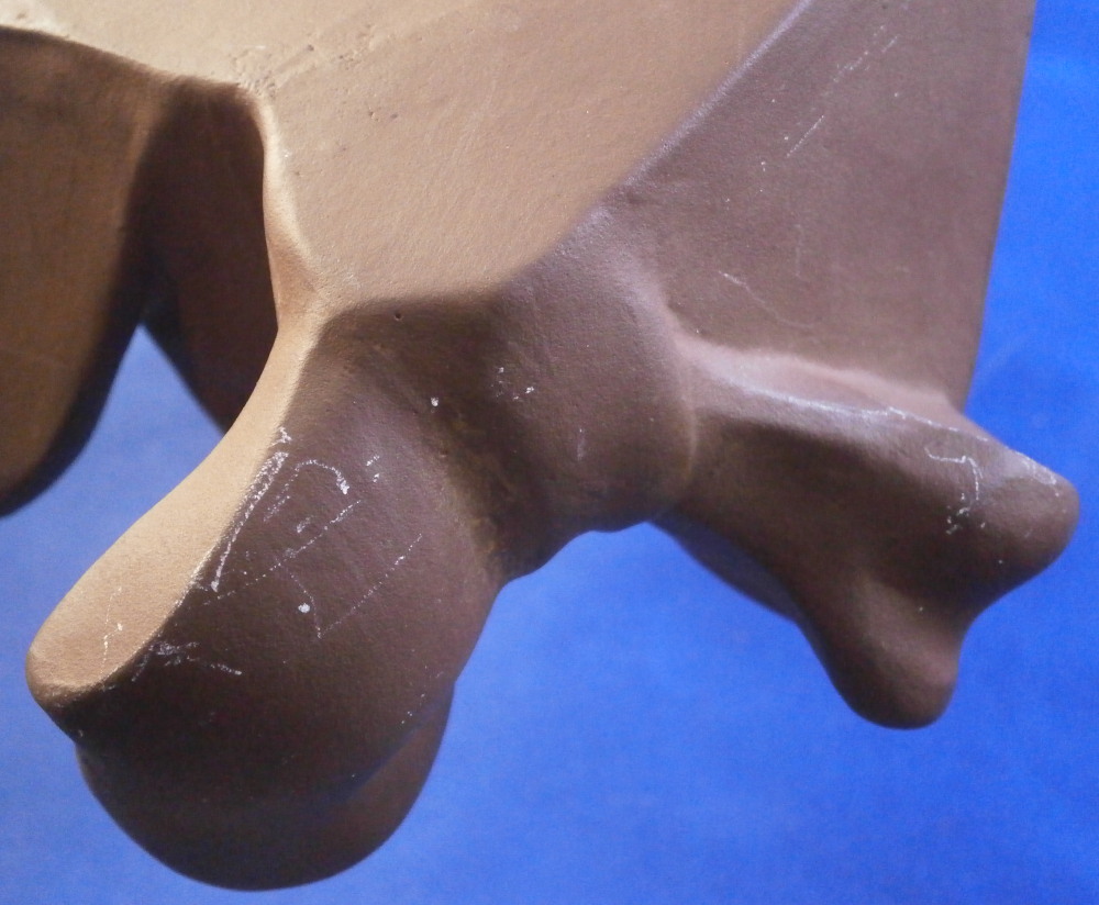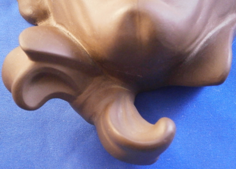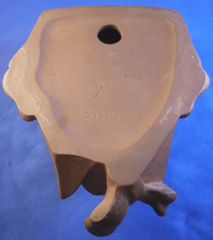 This is a fun wall decoration made by Meissen in the 20th century. It was first modeled by Alexander Struck in 1948 and is limited to 100 pieces according to the Meissen website. The mask is off Till Eulenspiegel - a leading character of an old German book. The piece is made of Böttgersteinzeug which is a sort of precursor to actual porcelain made at Meissen. It is extremely hard and more like a clay in terms of look. The expressive face with the funny looking head covering and the off center bowtie at the bottom make this a fun piece to look at! The eyes and mouth are open to the inside. It is superbly modeled with lots of detail. All brown as these always are. The piece is in perfect condition. It is about 10 inches tall, 7 inches wide and 4 inches deep. The piece is marked in the back with the word Boettger Steinzeug (Boettger Stoneware) as well as the usual impressed numbers and their impressed crossed swords mark with two cuts across denoting it being a second choice piece. Not sure why. The piece is in perfect condition with some stray white marks that should come off and ar mainly on the back side so don't show when on display. Hole in the back for hanging on the wall. It's a great piece! Please email me for more information or other pictures.