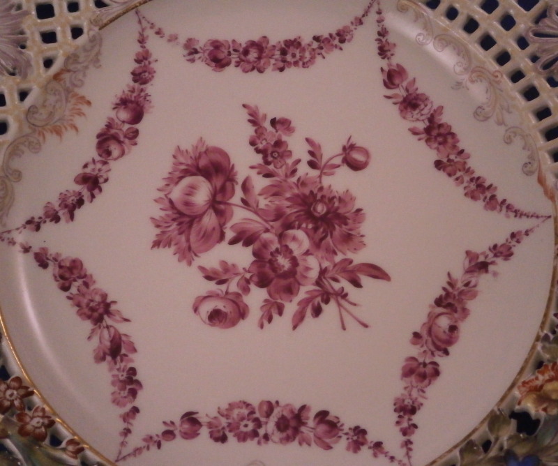 Brühlsches Allerlei Plate w/Puce Flowers