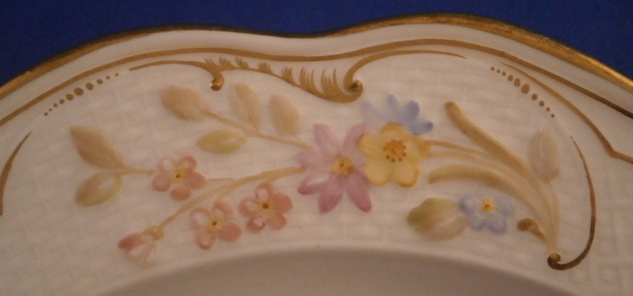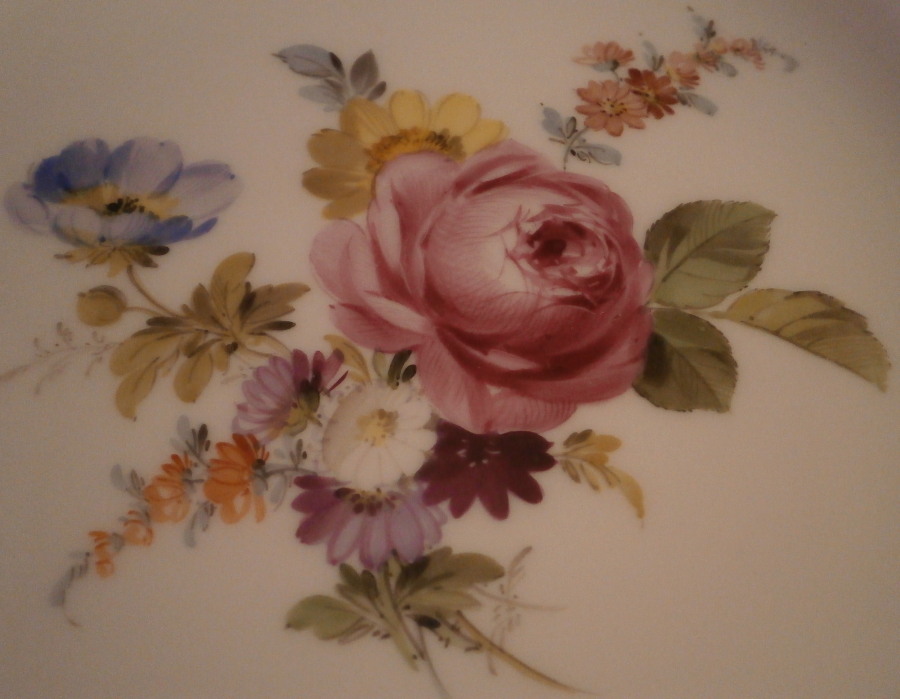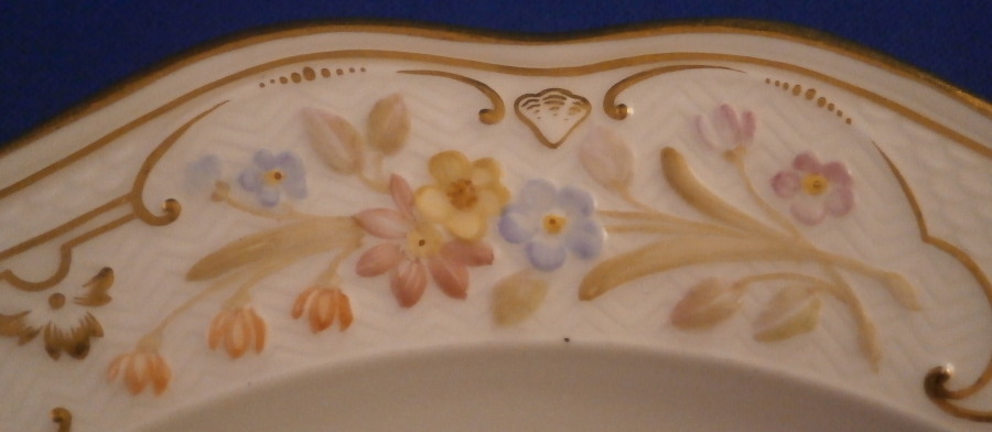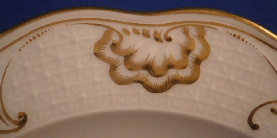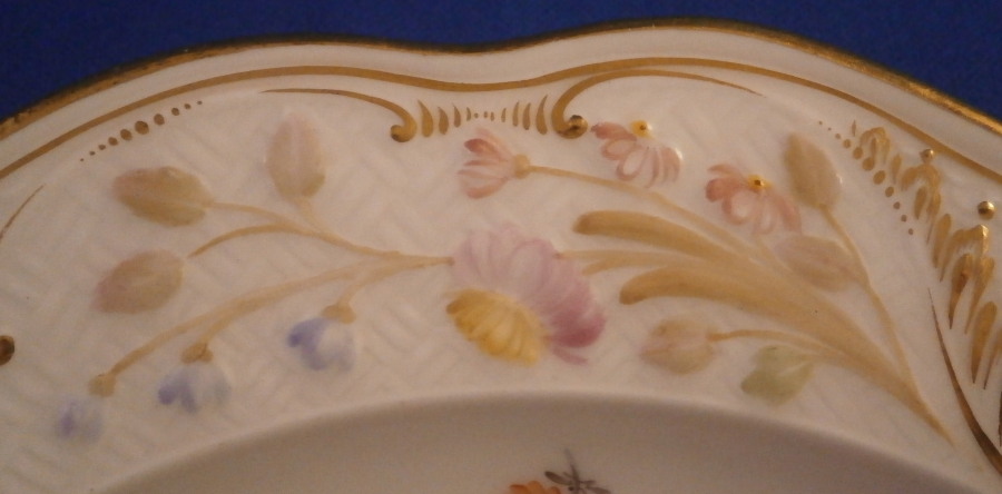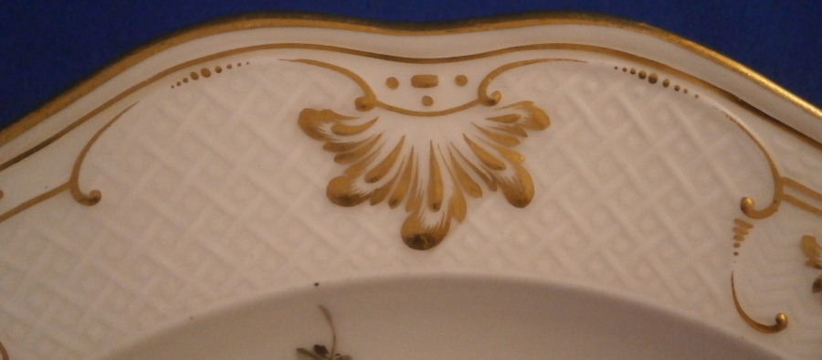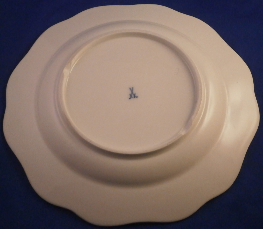 This is a really fun porcelain plate was made by Meissen in the mid to later 19th century. It has a rim design very similar to the typical Brühlsches Allerei except it is not reticulated at all. I think it looks nice and is more practical for use than the one with all the cutouts. The design includes three panels of hand painted relief flowers surrounded with a relief patterns to the white paste and some gold trim. Each relief pattern around the flowers is different! In between the floral panels are three panels with a relief gilded design to it again surrounded with a relief design to the white paste and some smaller design in between the panels. Quite fancy and the rim looks amazing! The center has a large hand painted floral arrangement to it as well as three small single flowers. Nicely shaped edge with gold trim to it. A stunning looking plate and not one you'll see to often again! The plate is in great condition with two tiny black firing spots along the well edge and two chips along the foot ring as shown. Does not affect the plate at all and it displays perfectly! It is marked with the under glaze blue crossed swords mark as well as the usual impressed numbers one find on Meissen of this period as shown. The plate is 1 inch tall and 8.625 inches in diameter which is a very nice size. I have a few more in this style on the site if you'd like a pair or more. If you have any questions just send me an email!