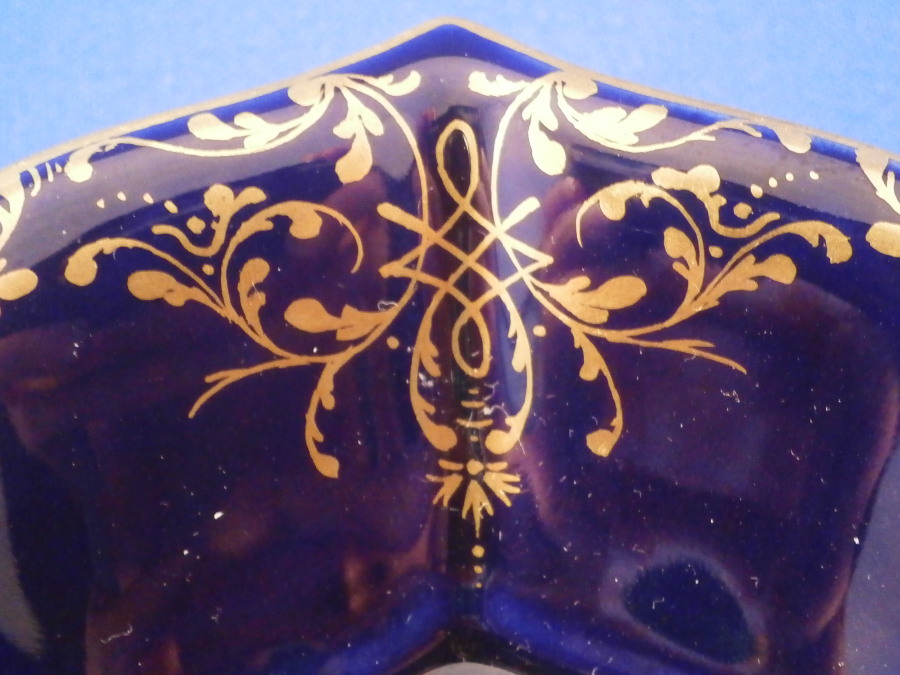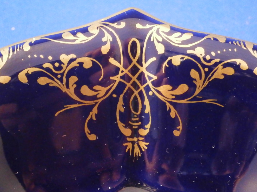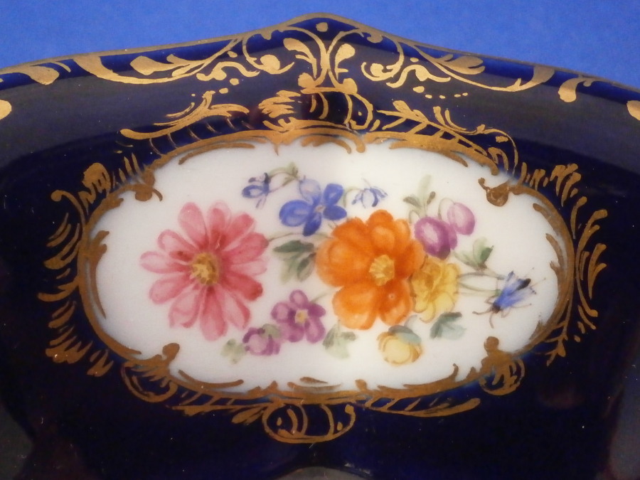 Unusual Shaped Cobalt Blue & Floral Saucer