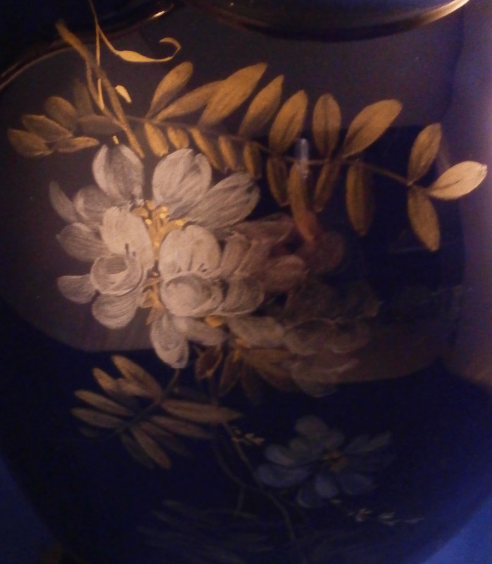 Platinum Flowers on Cobalt Coffee Pot
