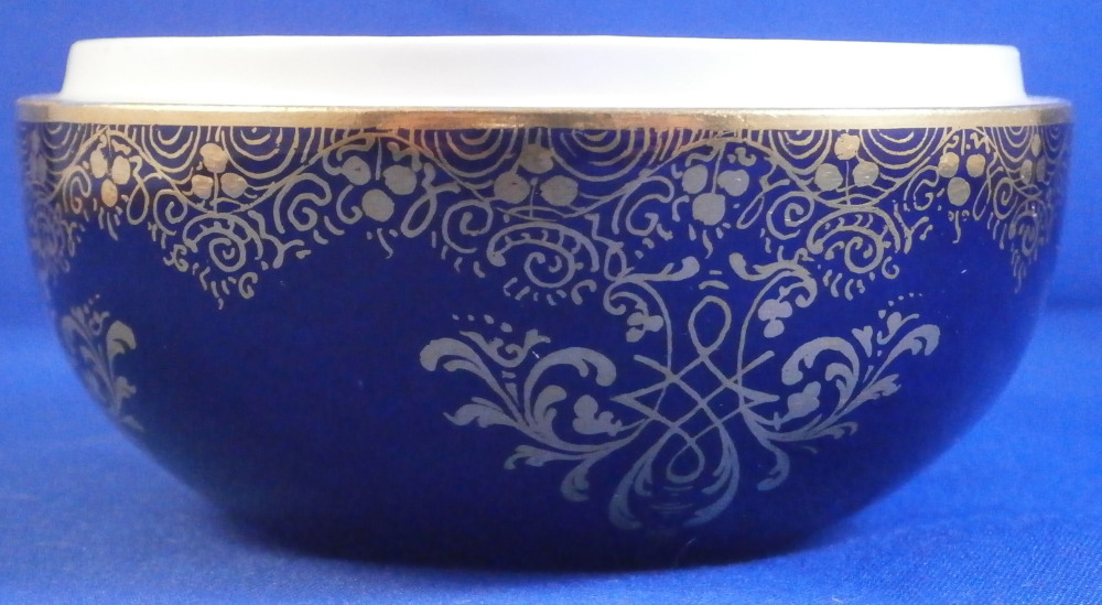 This is a superb little little box made by Meissen in the later 19th century. It is hand painted with a superb Watteau style scene on the lid surrounded by their nice deep cobalt blue color and some superb fancy gold trim. The painting is of superb quality! The bottom part has the same deep cobalt blue ground color and fancy gilding over that. An amazing piece for sure! Typical shape with a domed lid and simple bottom. Gold design to the bottom inside as well. The lidded dish is in perfect condition with a touch of wear to the gold ring around the base only. Displays perfectly! The bottom part is marked with the under glaze blue crossed swords mark (first quality) underneath as well as some incised marks as shown. The box is 2.5 inches tall and 3.375 inches in diameter. Please email me for more information or other pictures.