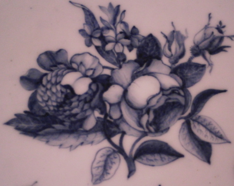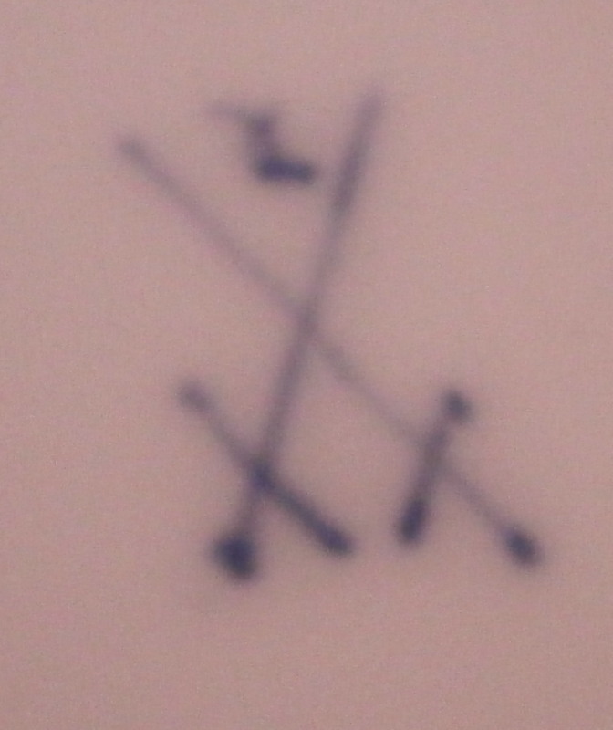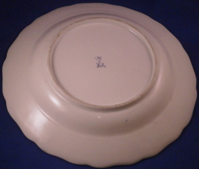This is a very nice early plate made by Meissen in about 1750. It is hand painted in under glaze blue which is not something you come across all that often from this period. It has a superb floral arrangement in the center with three flowers with their leaves along the edge but my favorite thing are all the bugs scattered around the plate especially the butterfly and caterpillar! It has a nicely shaped rim as well. The piece is marked with the straight blue crossed swords mark underneath with the blue painter's mark in between the top ends as well as an impressed number 20 as shown. The piece is in superb condition with some use marks to the glaze, some tiny stray blue paint dots and some glaze impurities and skips especially around the edge normal to these early pieces. The plate is 1.375 inches tall and has a diameter of 9.875 inches. A stunning piece that is different from the colored pieces one sees much more often! Please email me for more information or other pictures.