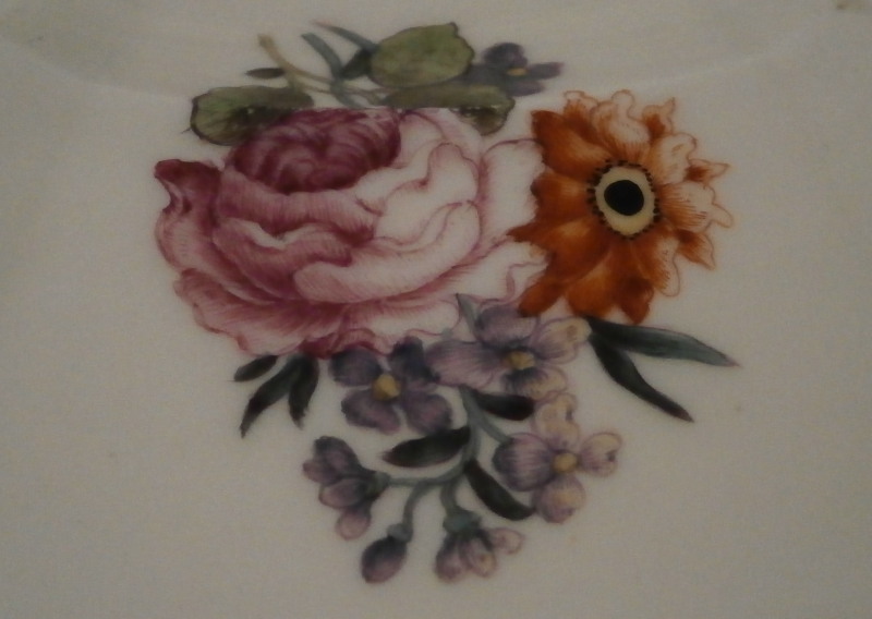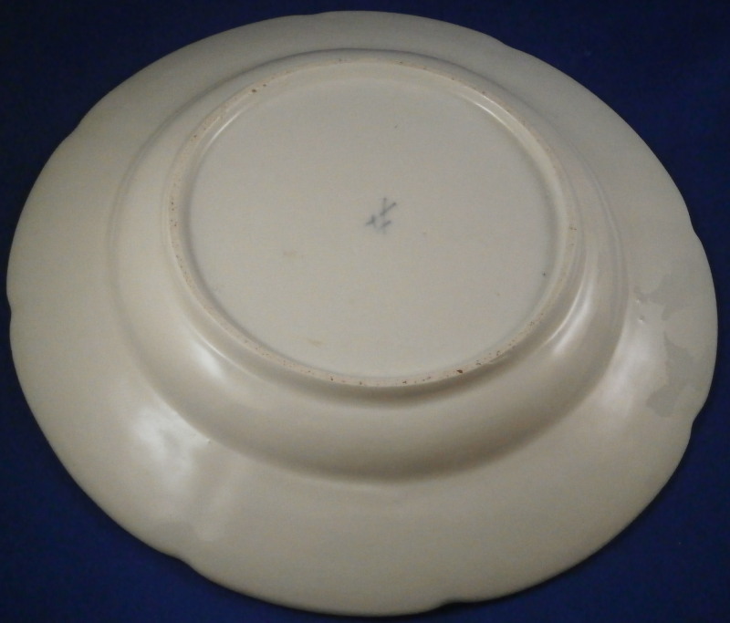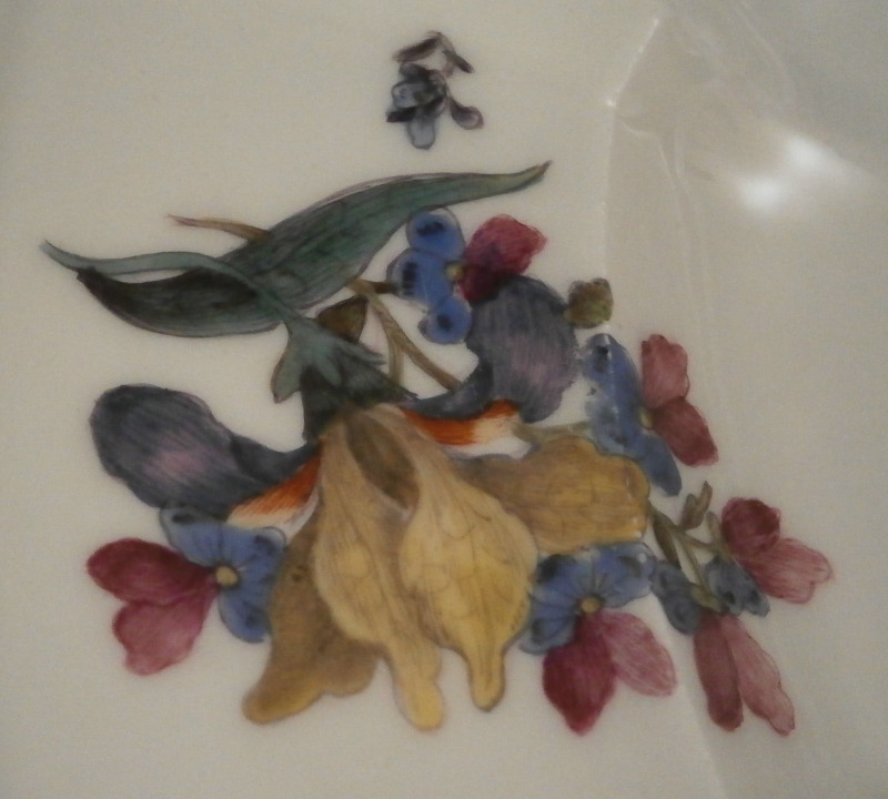 This is a superb porcelain plate made by Meissen around 1740. This is the same style used for the St. Andrews Service and the Tsarina Elizabeth I of Russia Service. The plate is decorated with the Gotzkowski erhabene Blumen (raised flowers) design in the paste around the well of the plate as well as to four sections of the rim with nice Woodcut style flowers in the center and in three areas along the rim but my favorite part is the butterfly that fills in the fourth spot. Typical brown trim to the edge. The flowers and butterfly are top noch! The plate is in excellent condition with some scratches to just the central floral arrangement as shown. Displays perfectly and is just stunning! The plate is 1.375 inches tall and 9.5 inches in diameter. Marked underneath with the underglaze blue crossed swords as well as an impressed number 16. Please email me for more information or other pictures.