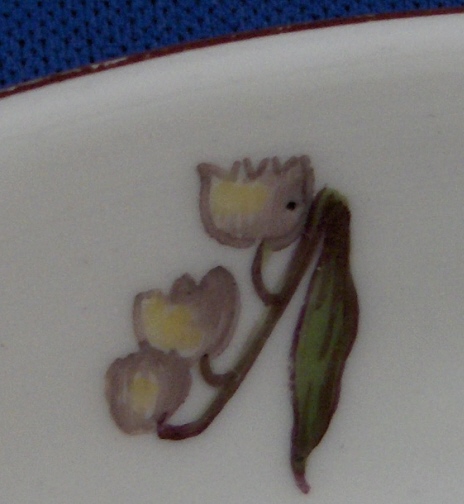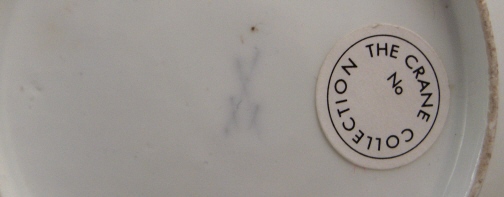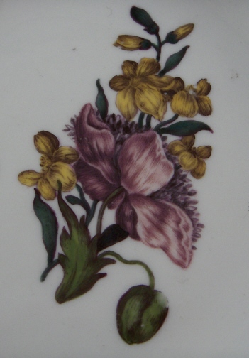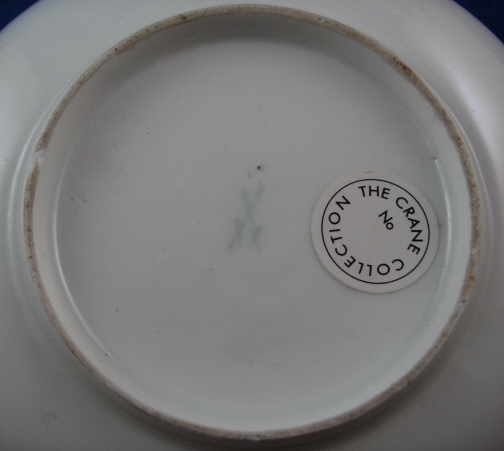 This is an early saucer made by Meissen in about 1740. It is handpainted with flowers in the woodcut style before the Deutsche Blumen style took hold. A large flower in the center and some smaller ones scattered throughout. There is also a the nice brown trim to the rim. The saucer is in great condition with a tiny underside rim glaze chip and a glazed over manufacturing firing line that is very short and more easily seen from the underside. The saucer is 1.125 inch tall and 5.125 inches in diameter. It is marked with the underglaze blue crossed swords mark that are straight from around 1740. I have the perfect cup to match this piece if you would like a cup and saucer! Please email me for more information or other pictures.