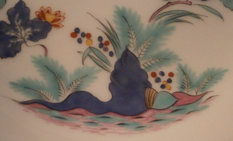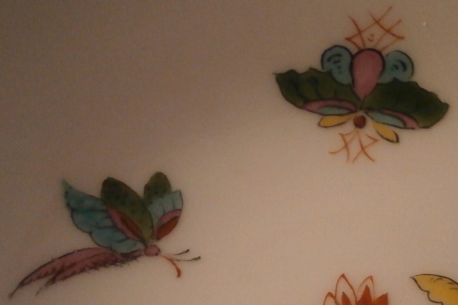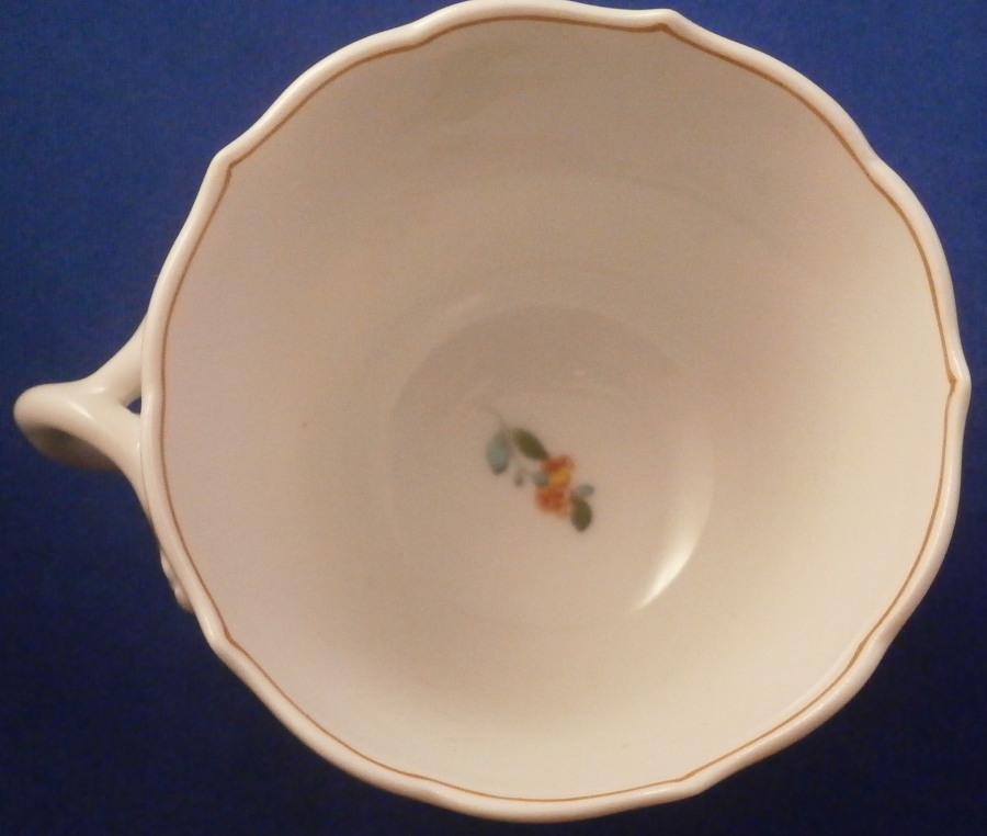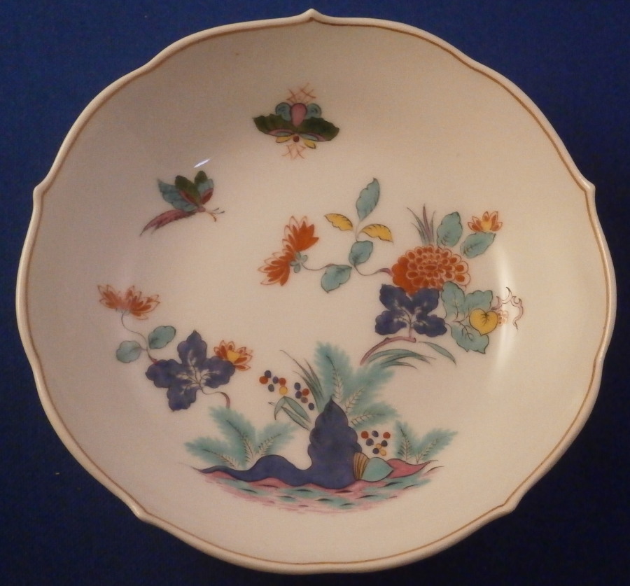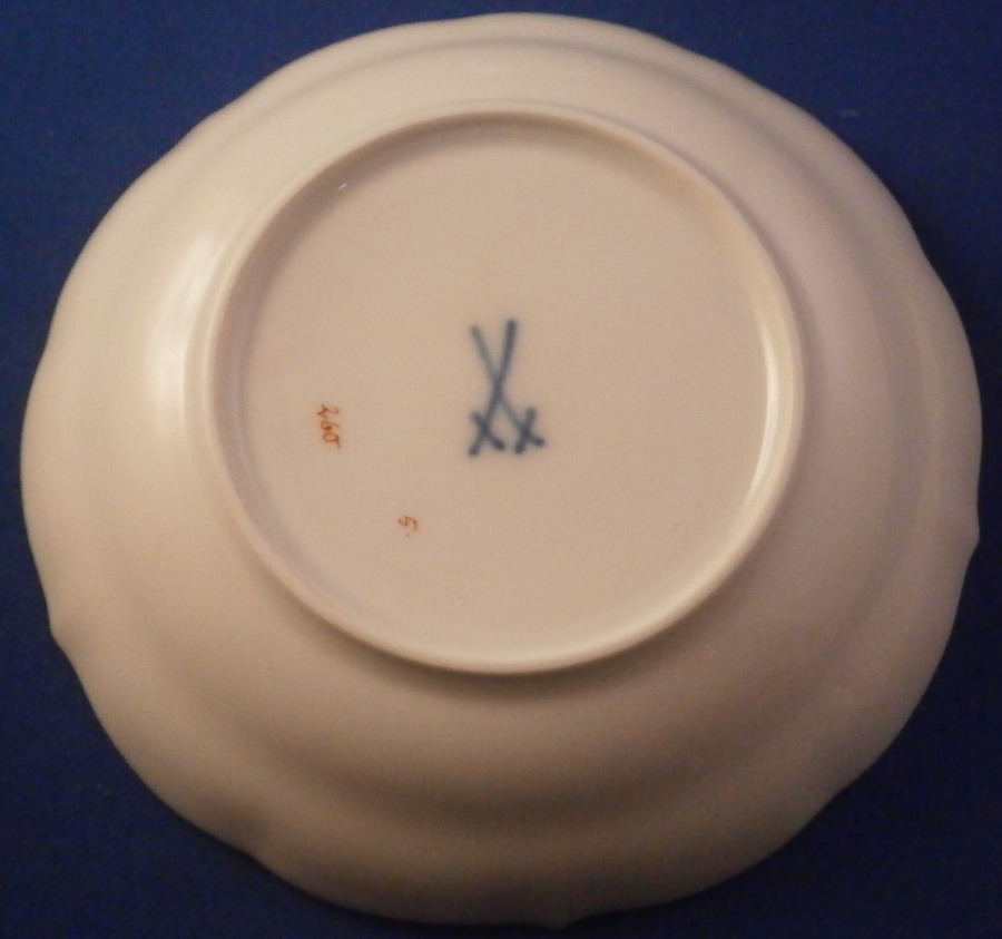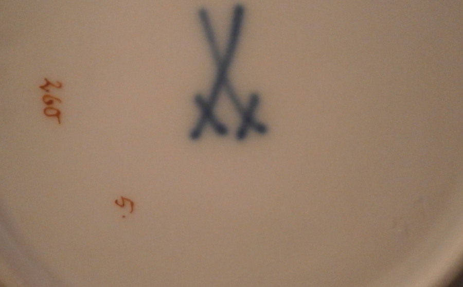 This is a mocha or espresso coffee demitasse cup and saucer made by Meissen in the 20th century. Both pieces are hand painted with a really superb Kakiemon style pattern that has all the typical colors and looks superb! I especially like the two bugs on the saucer! The design fills the surface of both pieces nicely and has a light brown trim just under the nicely shaped edge. Even a small extra flower to the bottom inside of the cup - a sure sign of quality! The handle of the cup is superb as well. Not a design one sees often as well and it really is stunning! This size cup is not easy to find and I like them better than regular sized pieces since they take up less room in the cabinet. The set is in perfect condition which never hurts either :) It is marked with the under glaze blue crossed swords mark underneath (first quality) as well as the usual impressed and painted marks one expects from pieces of this period as shown. The cup is just under 2 inches tall and 2.5 inches in diameter. The saucer is 1 inch tall and has a diameter of 4.25 inches. Please email me for more information or other pictures.