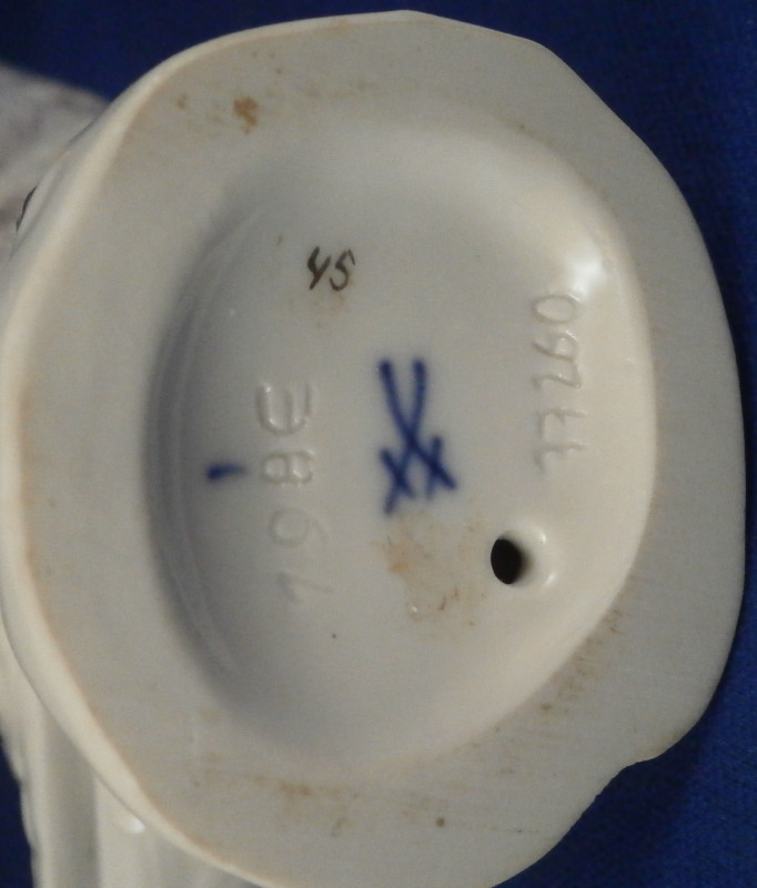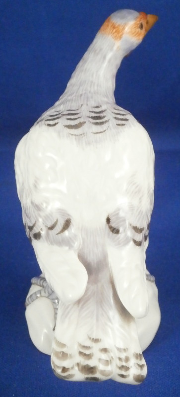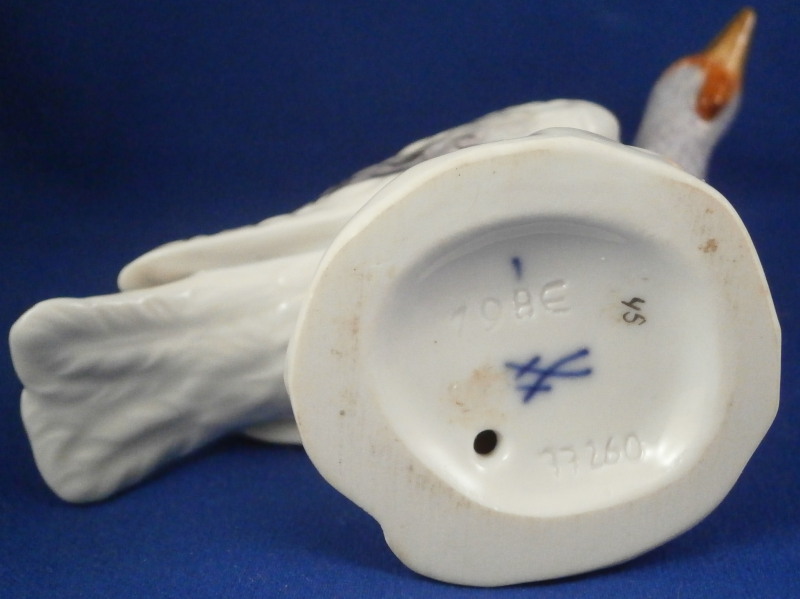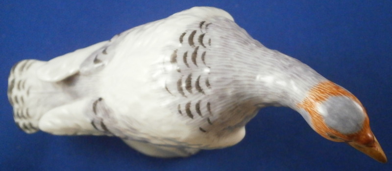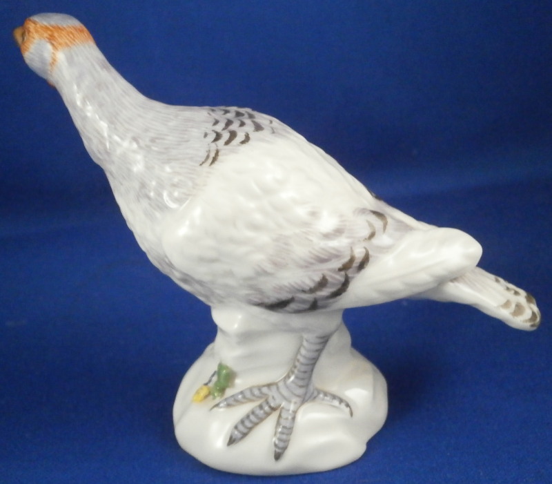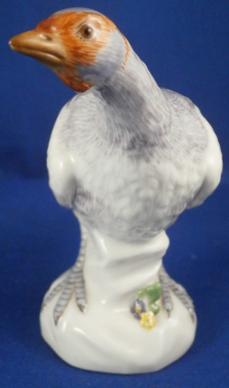 This is the rare larger version of this female turkey (aka hen ) figurine made by Meissen in the 20th century. Nicely modeled and hand painted as one would expect from the top maker! The figure is standing on a little base painted with a leaf and flowers to it and is painted all around so it can be sitting in the middle of the table and she looks great from all angles! The piece is in perfect condition. It is marked underneath with the under glaze blue crossed swords mark as well as the usual impressed numbers and a painter's mark. The bird is 3.375 inches tall, 1.625 inches wide and 4 inches long. Please email me for more information or other pictures.