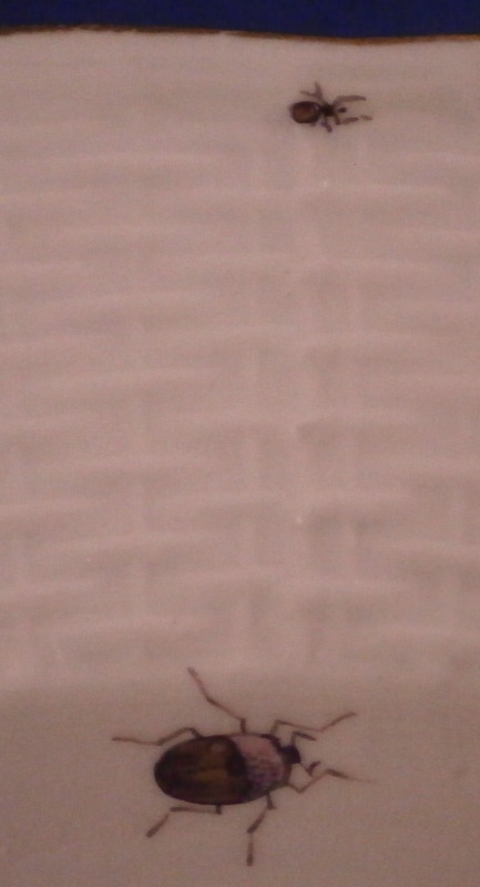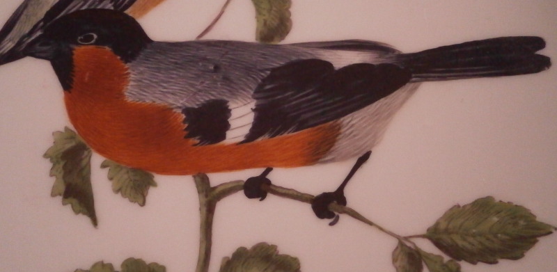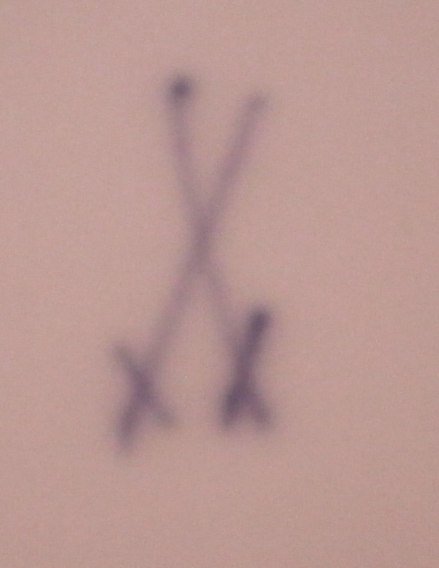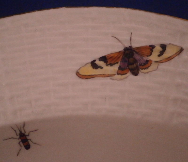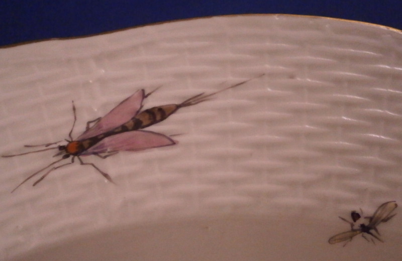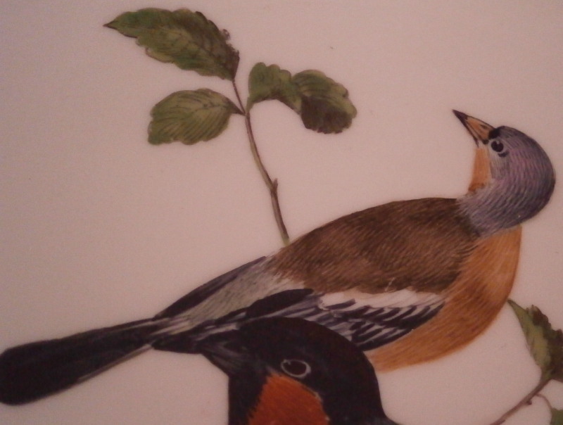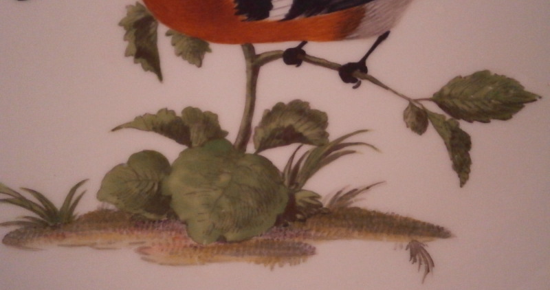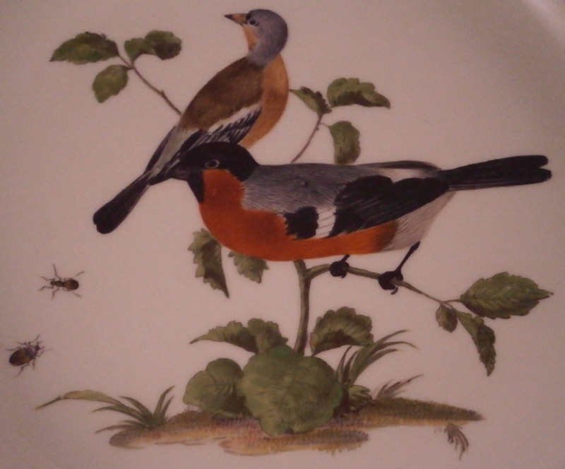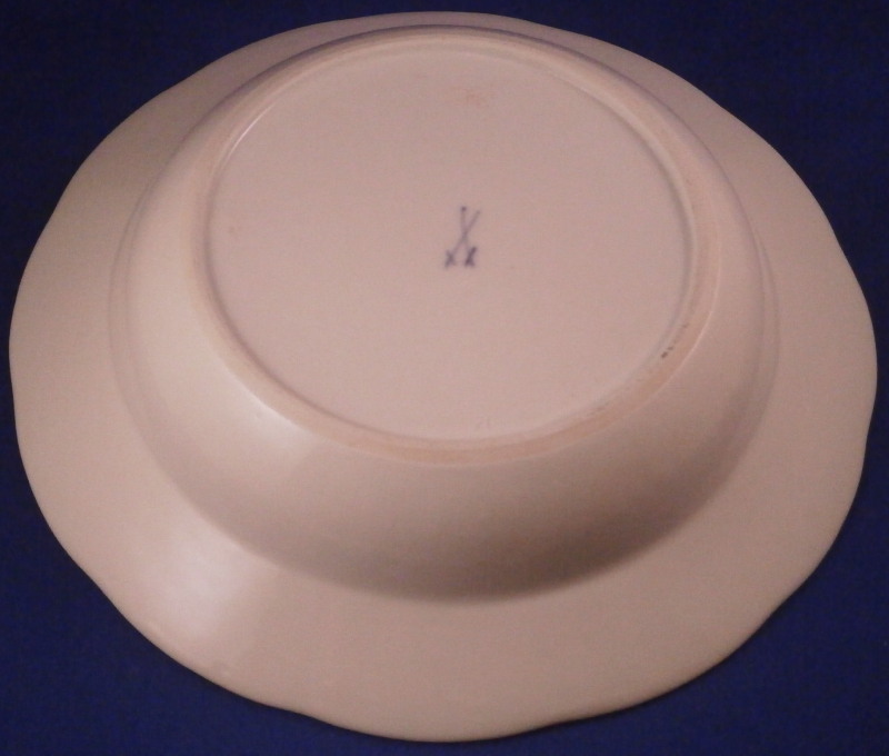 This is a nice deep / soup plate made by Meissen in the mid 18th century around 1750. It is hand painted with a superb bird scene in the center including two birds sitting on branches with some greenery around them as well as some really nice bugs / insects scattered all around as well as a basket weave design to the paste of the rim and a gold trim to the edge. A really stunning example! The piece is 1.75 inches tall and 8.875 inches in diameter. The plate is in superb condition with some minimal wear and displays perfectly! Marked underneath with the under glaze blue crossed swords as well as the usual impressed number as shown. Please email me for more information or other pictures.
