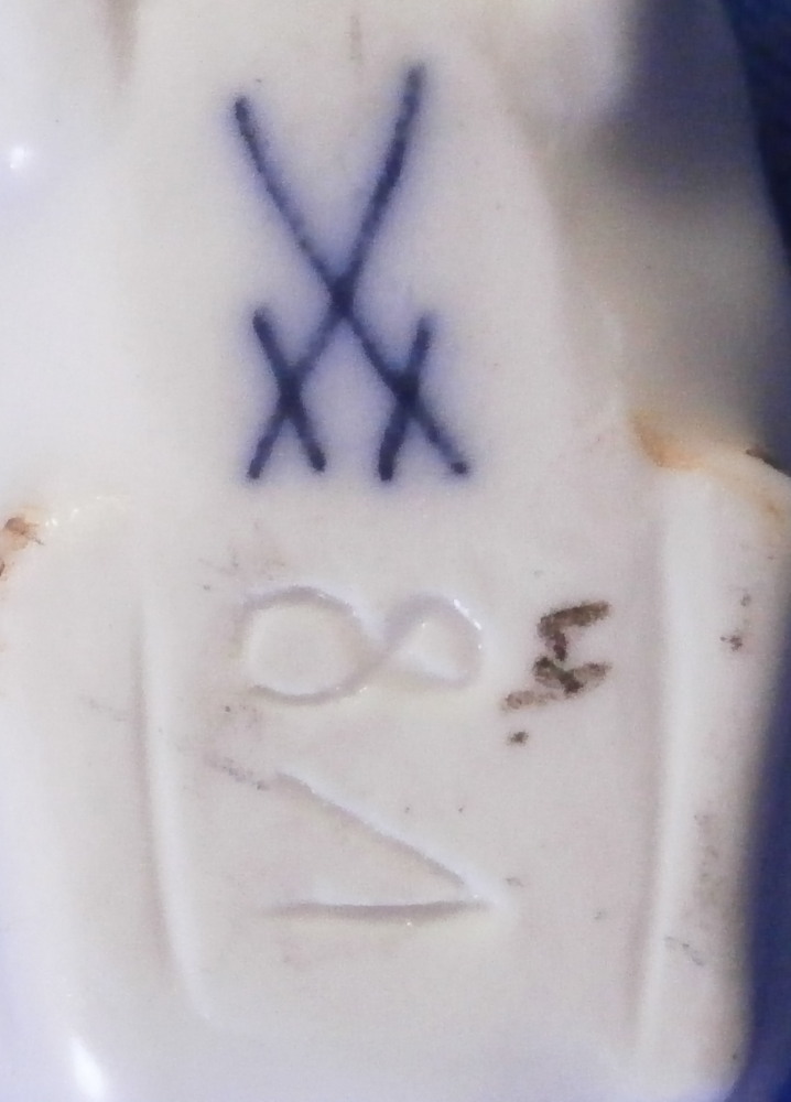 This is a super cute small mouse or rat figurine made by Meissen in the 20th century. It is one of the cutest miniatures they made in my opinion. Not easy to find since the tail is almost always broken due to obvious reasons! Nicely modeled and painted as one would expect from the top maker. The figurine is in perfect condition which is amazing given this skinny and long fragile tail! It is marked underneath with the under glaze blue crossed swords mark as well as an incised number and a painter's mark as shown. The figure is 0.625 inches tall, 0.75 inches wide and 3.125 inches long (about half of which is the tail!). Please email me for more information or other pictures.