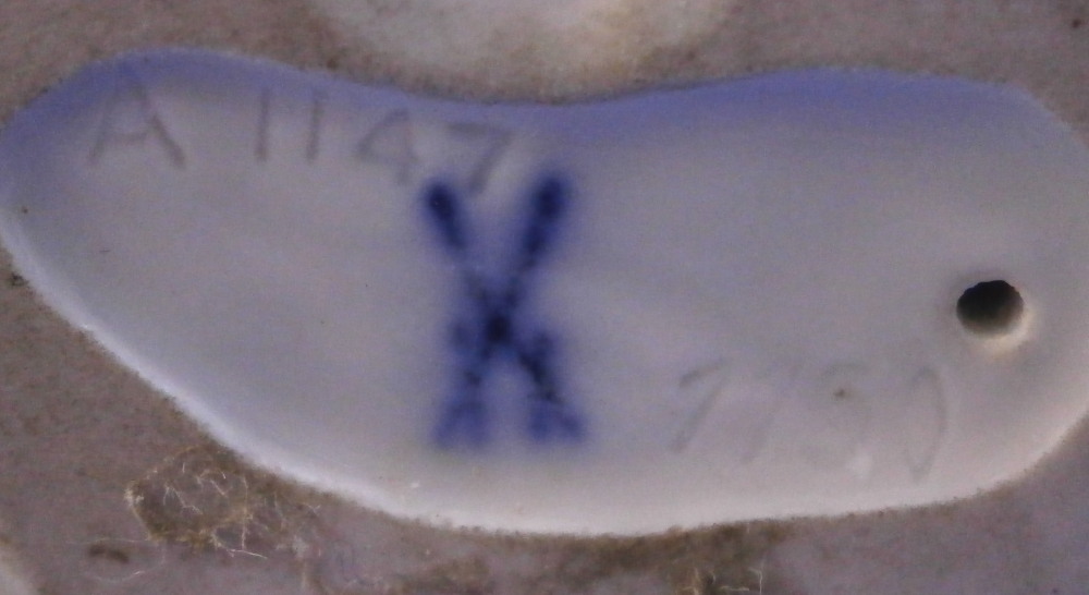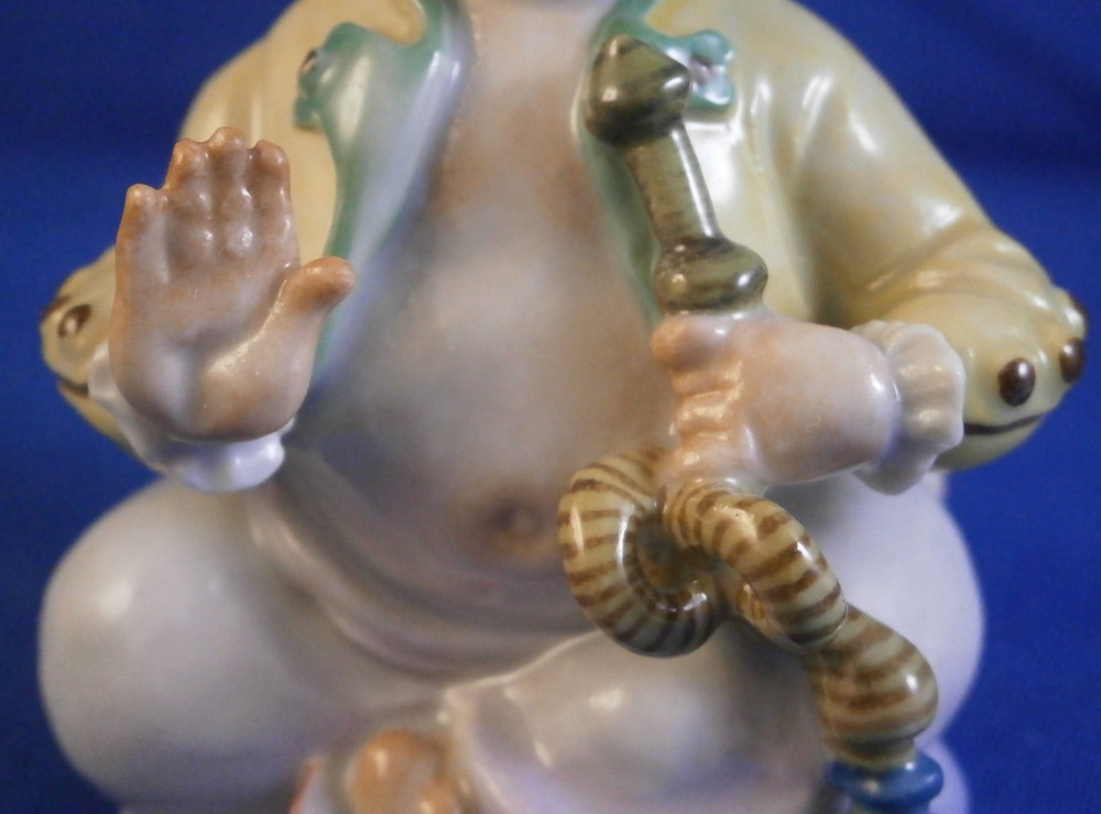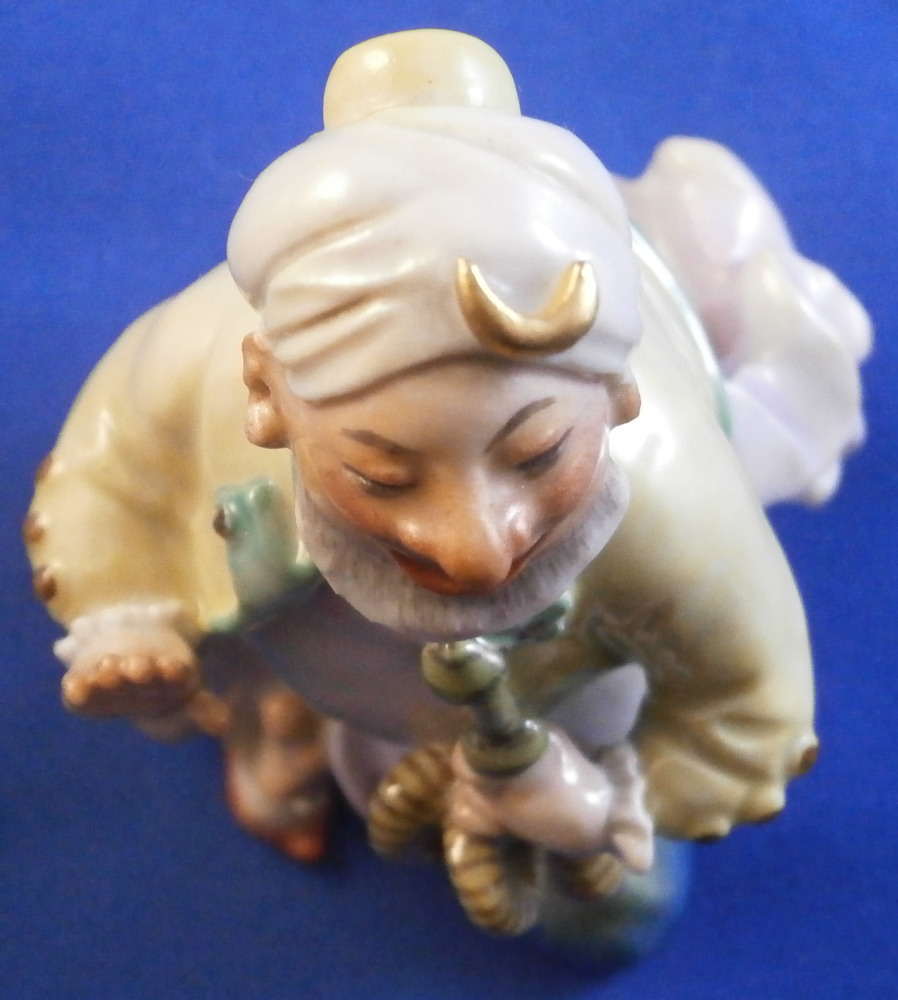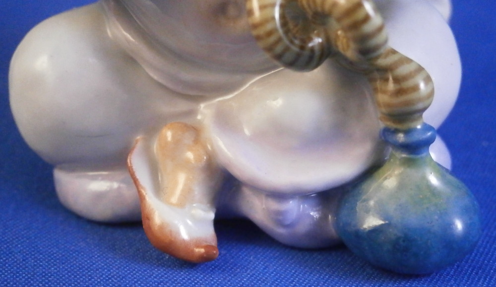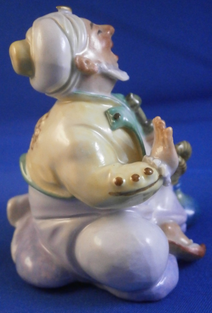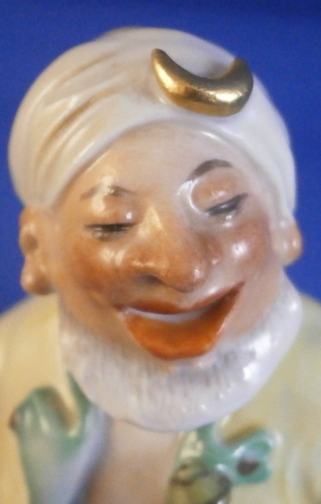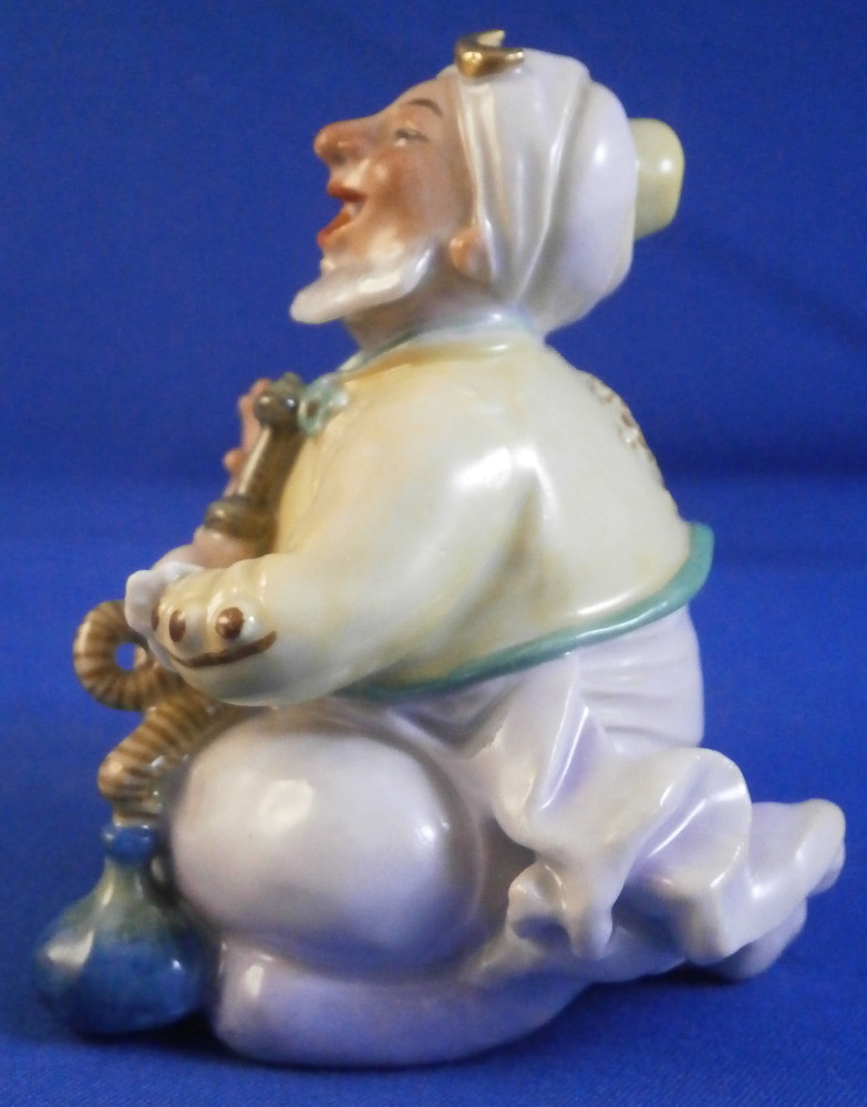This is a really fun figurine made by Meissen in the 20th century. One of my all time favorite figurines! It is a turk with a water pipe / hookah designed by the famous Paul Scheurich. One of those pieces that makes you smile everytime you look at it! A very well modeled and hand painted piece with lots of detail. The figure is in perfect condition. It is 2.5 inches tall, 1.875 inches wide and 2 inches deep. The figure is marked with the under glaze crossed swords mark underneath the base as well as the usual impressed marks of the period as shown. Please email me for more information or other pictures.