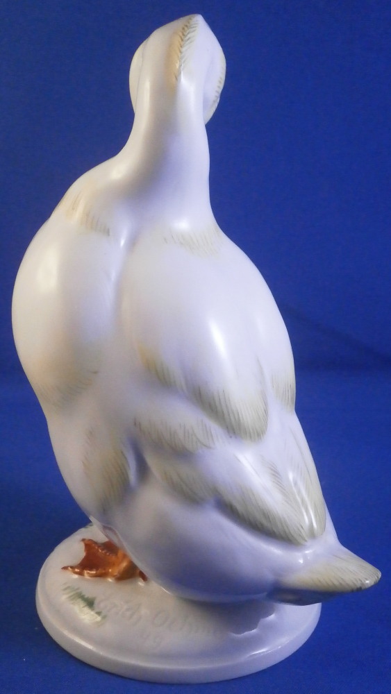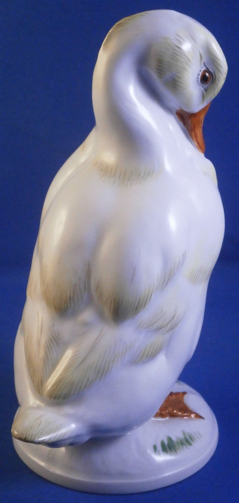 This is a fun figurine of a female duck made by Meissen in the mid 20th century. Originally modeled in 1949 by Erich Oehme. A very cute figurine that is nicely modeled and off course superbly hand painted. The duck is preening itself. The figure is in perfect condition which is always a bonus. The piece is 5.5 inches tall, 2.75 inches wide and 3.75 inches deep. The bird is marked underneath with the under glaze blue crossed swords mark (first choice) as well as the usual impressed numbers and a painter's mark as shown. Please email me for more information or other pictures.