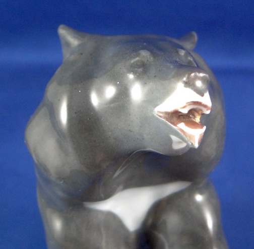 This is a figurine of a sitting bear made by Meissen during the Pfeiffer period (late 1920's - early 1930's). He is superbly modeled and painted just right to look very elegant and almost real. The figurine is in great condition with just a tiny teeny chip to his right foot that was overpainted perfectly or might have even been made this way. The bear is marked underneath with the underglazed blue crossed swords mark with the dots between the tops, the incised model number V.106, an impressed 43 and a faint IV as a painters mark. The piece is 4 inches tall, 2.25 inches wide and 2.75 inches deep. Please email me for more information or other pictures.