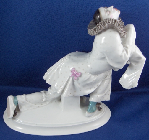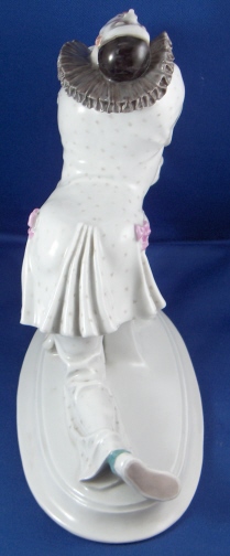 This is a figurine of Pierrot from the Russian Ballet made by Meissen around 1915. It was designed by Paul Scheurich who is one of the most famous porcelain designers of the 20th century! It is handpainted quite elegantly and modelled superbly! The figurine is 7 inches tall, 7.75 inches long and 3.5 inches wide. The figure is in great condition with a small chip to the left sleeve end that is hard to spot and a thing chip to the end of a fold of his jacket on his left side. Neither takes away from the piece what so ever! Marked to the bottom with the underglaze crossed swords mark in blue as well as the incised model number D283. and an impressed 48. Please email me for more information or other pictures.