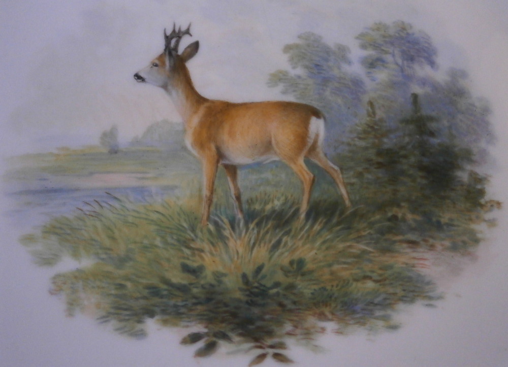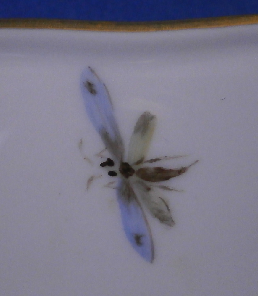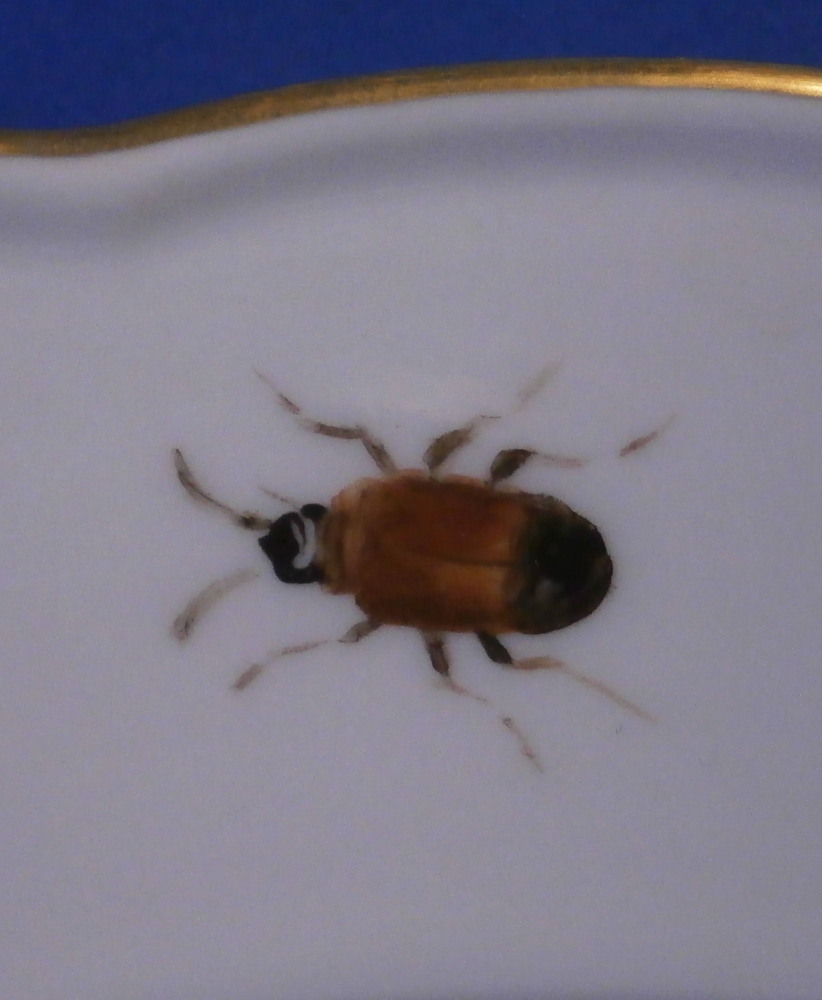 This is a superb plate made by Meissen in the late 19th century or early 20th century. It is hand painted with a superb scene in the center of a male deer / buck in a landscape surrounding. The rim has three different bugs/insects painted on it and a gold trim to the nicely shaped edge. The plate is in perfect condition which is always a plus and marked with the under glaze blue crossed swords mark underneath as well as the usual impressed numbers of this period. The piece is 1.375 inches tall and 9.75 inches in diameter. I have listed a few other matching plates with different animal scenes if anyone wants a pair of a set. Please email me for more information or other pictures.
