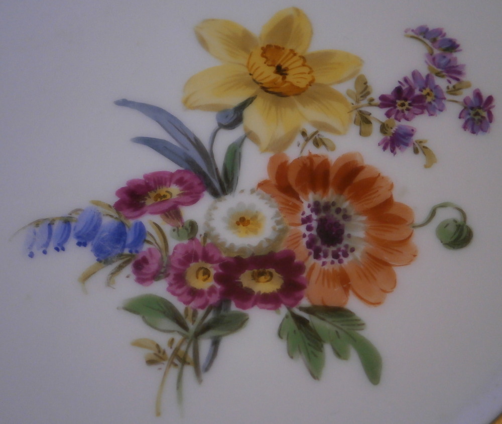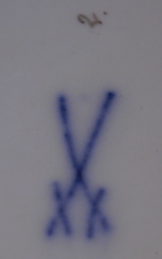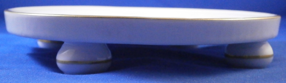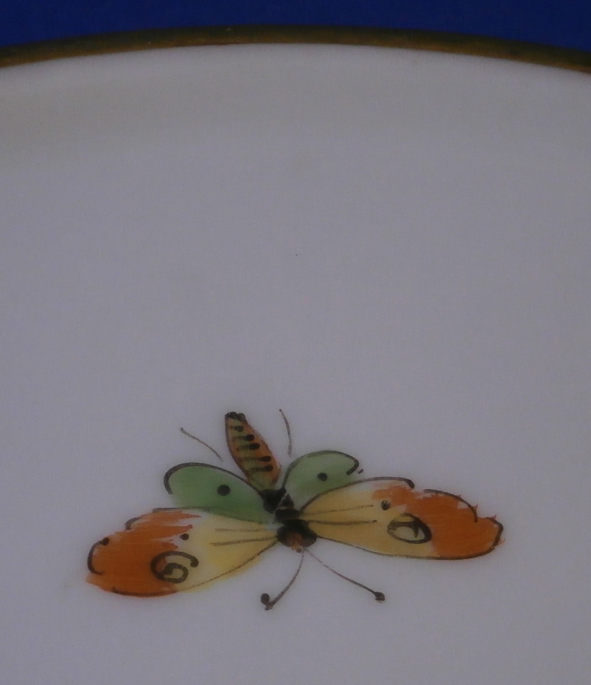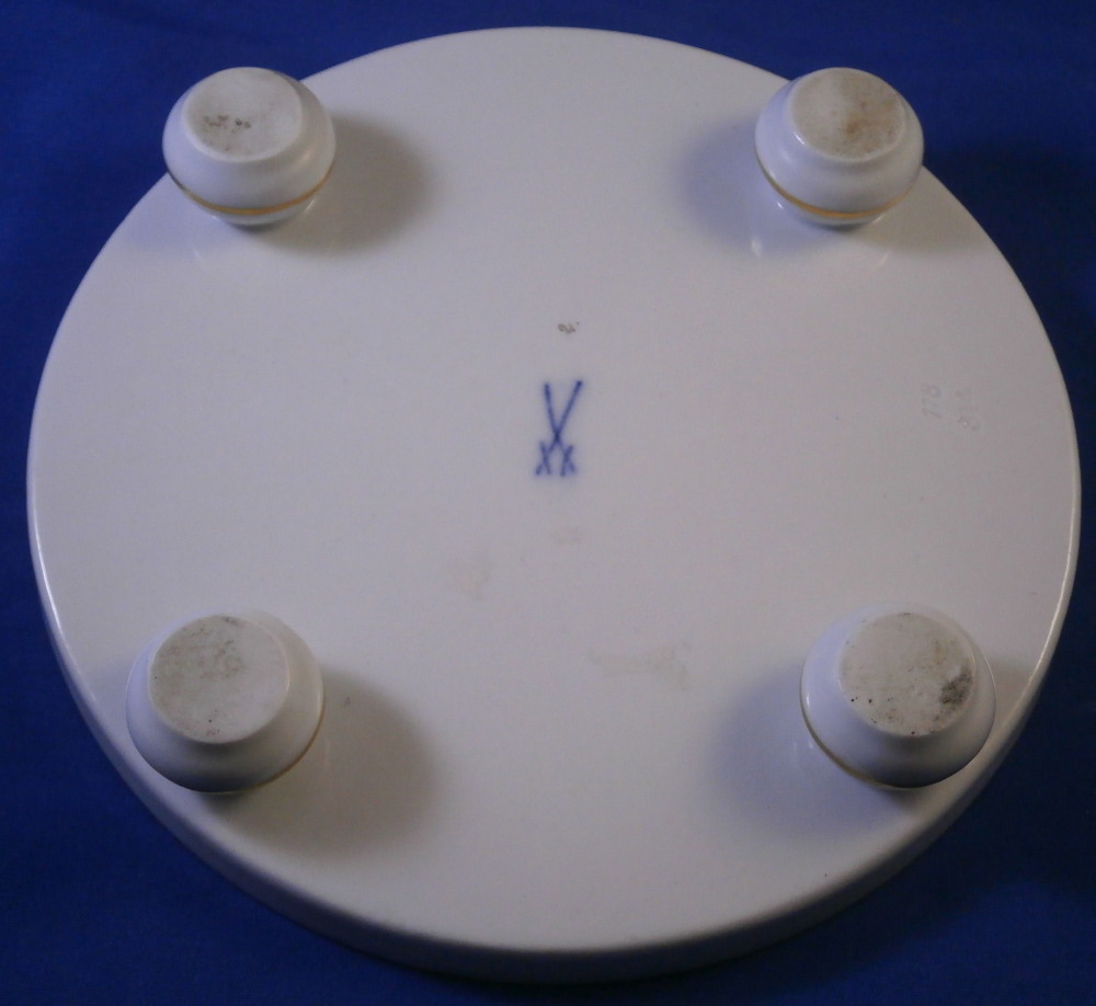 This is a hard to find trivet / hotplate / teapot undertray made by Meissen in the 20th century. The plate is hand painted with a nice floral arrangement as well as a single flower and a gold butterfly. Simple gold trim to the slightly raised edge and a band around each foot. The piece is in superb condition with just a few use marks to the clear glaze. It displays perfectly! The underside is marked with the under glaze blue crossed swords mark, the typical impressed marks and a black painter's mark. The trivet is 1.125 inches tall and has a diameter of 5.875 inches. Please email me for more information or other pictures.