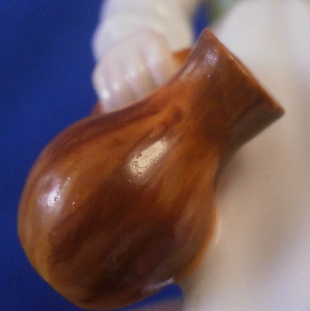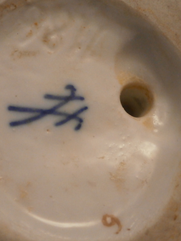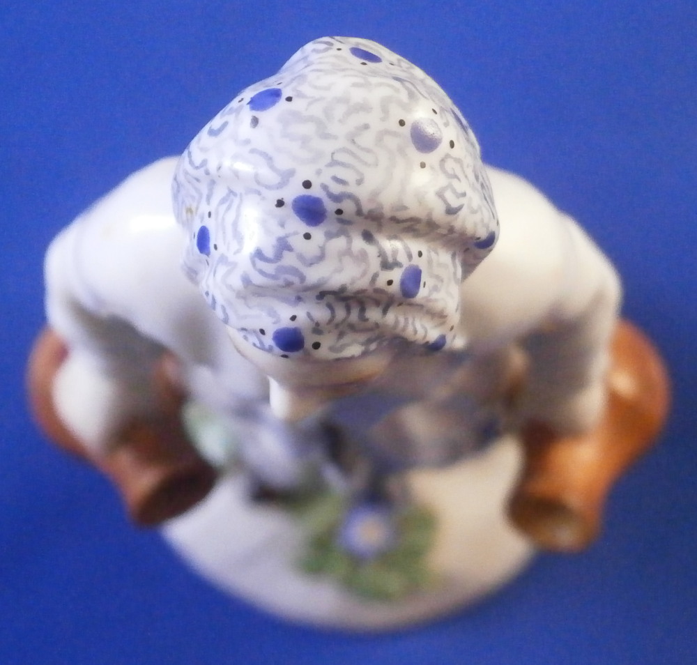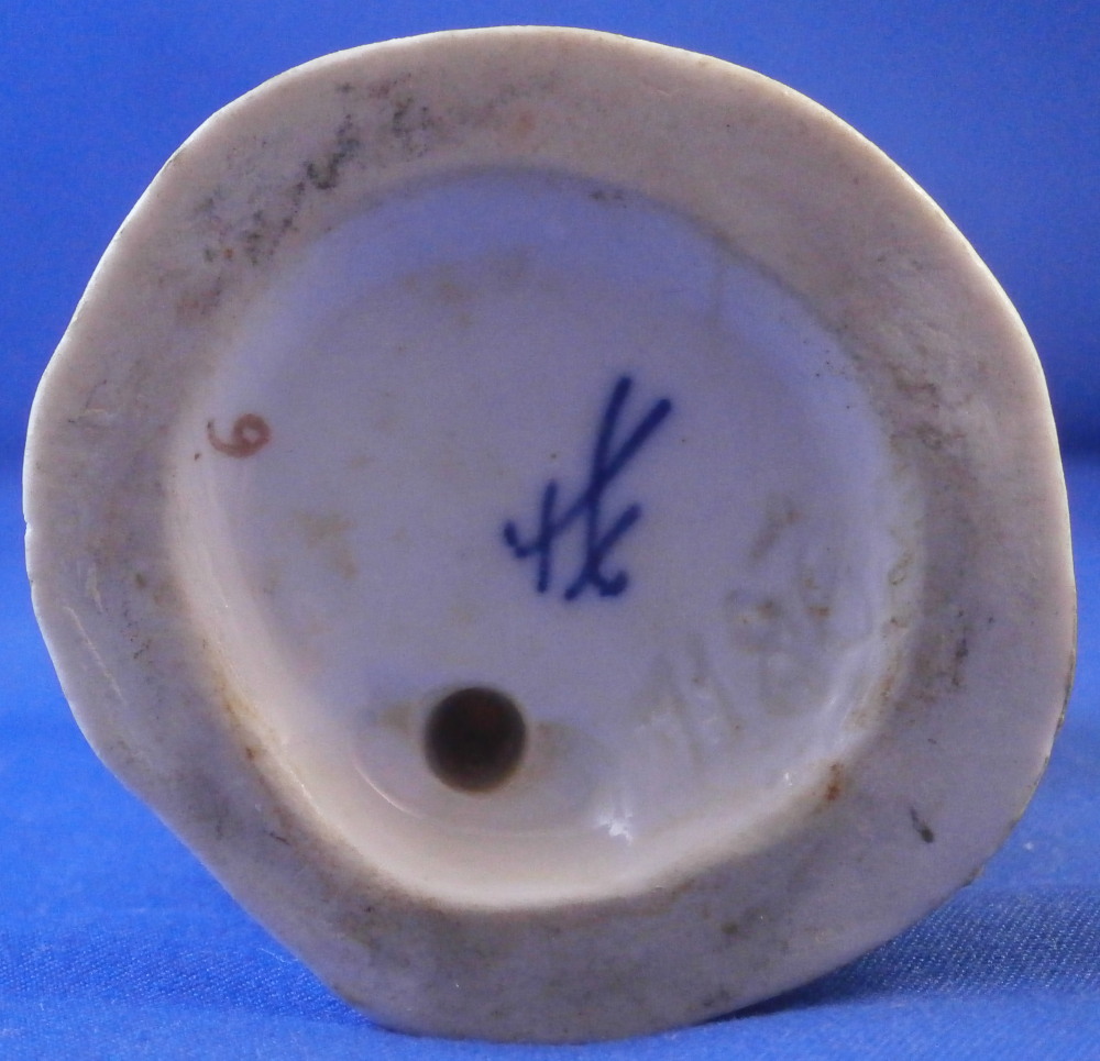This is a great figurine of a peasant girl from the Russian street trader series made by Meissen during the Pfeiffer period of the 20th century. The series is sometimes called the Cris de St. Petersburg - the Russian version of the Cris de Paris from France. First modeled by Peter Reinicke in the 18th century the figurine is of a lady golding a jug in each hand while wearing a long coat, a head scarf and standing on a white base with some flowers on it. A really well modeled and hand painted figurine. The figure is in great condition with a leaf on the base being chipped and each jug has had the opening restored. Probably small chips but impossible to tell. She displays perfectly!The figure is 5 inches tall, 2.25 inches wide and 1.875 inches deep and marked with the under glaze blue crossed swords mark underneath as well as the usual impressed numbers of the period and a 9. as a painter's mark. Please email me for more information or other pictures.