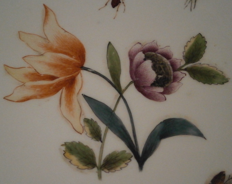 This is an early and superb plate made by Meissen in about 1740. The edge has a nice shape to it with a gold trim, the rim has a basketweave relief design to the paste and two flowers and two bugs with the center having a superb large double flower to it as well as multiple insects and a small flower. The flowers and bugs are in the woodcut style of around 1740 but the best part of all the decoration is that if you look closely they all have little shadows to them. As if they were not special enough on their own the shadows under them are amazing! This style of painting is often attributed to Klinger as a painter which is probably more of a myth since as far as I know only one signed piece is known by him and it was not shaded. Either way the bugs and flowers are of a very nice quality and the shade makes them seem lifelike on the white background. The plate is in superb condition with some wear from use and age which is normal and can be seen in my pictures. Nothing that takes away from this fun piece! The plate is 1.25 inches tall and 9.25 inches in diameter. The piece is marked with the under glaze blue crossed swords mark underneath as well as an impressed number which surprised me a bit as I though it might be a touch earlier but this dates it to right around 1740. Please email me for more information or other pictures.