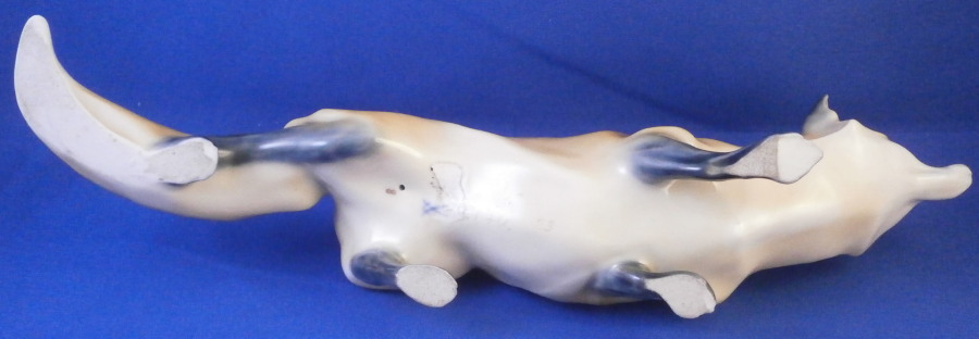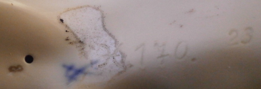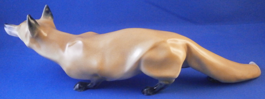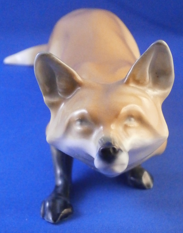This is a really nice figurine of a fox made by Meissen in the early 20th century. You can just imagine it slinking through the forest the way this figure was modeled! It is a really nice figurine decorated in their rare under glaze colors from around 1900. It was designed by Paul Walther in 1907 and has the model number X 170. This figurine here being from the original period. A really nicely painted version of it with that Art Nouveau / Jugendstil feeling to it. The figurine is in superb condition!It is marked underneath with the under glaze blue crossed swords mark (first choice) as well as the model number, a painter's mark and another incised number as shown. Some sort of ground down area near the mark as shown - it was done at the factory to either smooth out a flaw or some sort of firing support. Probably the latter since it was deemed a first choice! The piece is 2.875 inches tall, 1.875 inches wide and 10 inches long. Please email me for more information or other pictures.