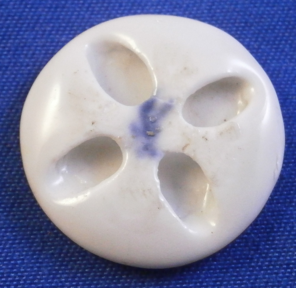 This is another very rare small button made by Meissen in the 19th century. It is the type you could attach using the four holes in the back so it is tighter than the ones with just one loop. Not something you see often at all and I ahve six of them so if you'd like more than one here is a rare chance to complete your unique project for the Meissen crazy collector :) The front of the button is hand painted with a superb polychrome floral arrangement on white ground with a gold trim to the edge. The back has four oval holes to it which you can get the string through to attach it securely and tightly. A fairly flat button that is only about 0.125 inches thick with a diemter of just over 0.75 inches. The porcelain is marked underneath with the blue swords mark as shown - 1st quality with the area around it ground flat because of how it was fired which is normal. The button is in perfect condition just like the day it was made. It displays perfectly and looks super elegant plus I have rarely ever seen this style and if you are in need of a few this is probably your only chance to get them for a long time. Please email me for more information or other pictures.