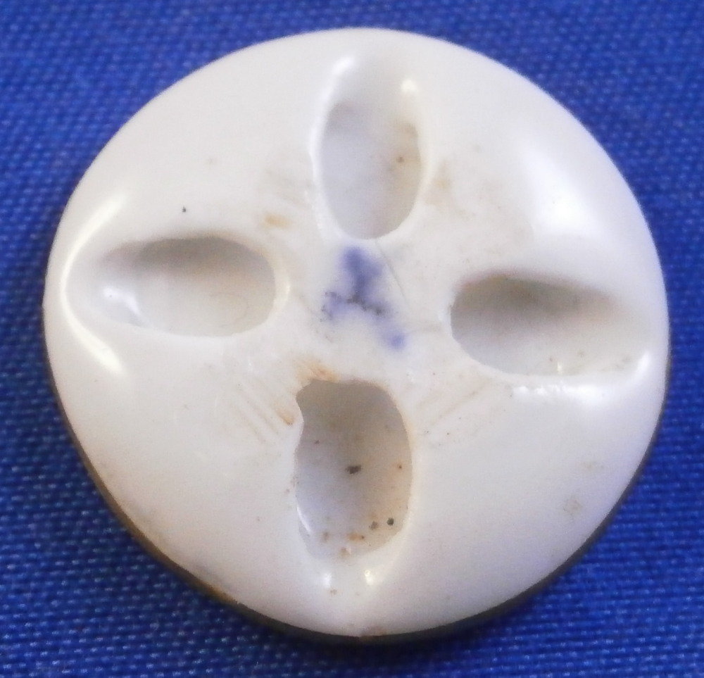 This is a fifth very rare small button made by Meissen in the 19th century. It is the type you could attach using the four holes in the back so it is tighter than the ones with just one loop. Not something you see often at all and I have six of them so if you'd like more than one here is a rare chance to complete your unique project for the Meissen crazy collector :) The front of the button is hand painted with a superb polychrome floral arrangement on white ground with a gold trim to the edge. The back has four oval holes to it which you can get the string through to attach it securely and tightly. A fairly flat button that is only about 0.125 inches thick with a diameter of just over 0.75 inches. The porcelain is marked underneath with the blue swords mark as shown - 1st quality with the area around it ground flat because of how it was fired which is normal. The button is in perfect condition just like the day it was made. It displays perfectly and looks super elegant plus I have rarely ever seen this style and if you are in need of a few this is probably your only chance to get them for a long time. Please email me for more information or other pictures.