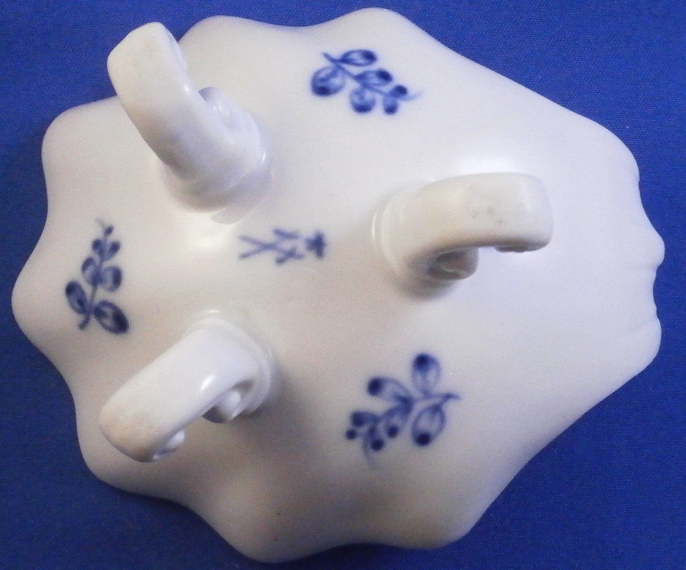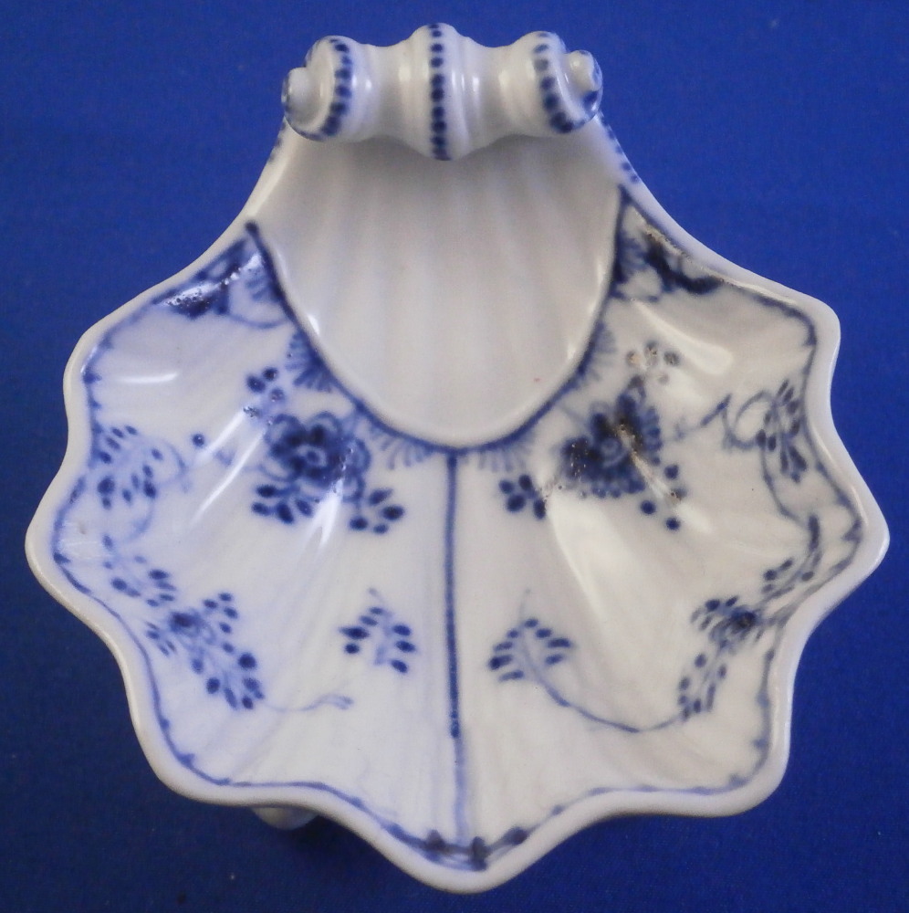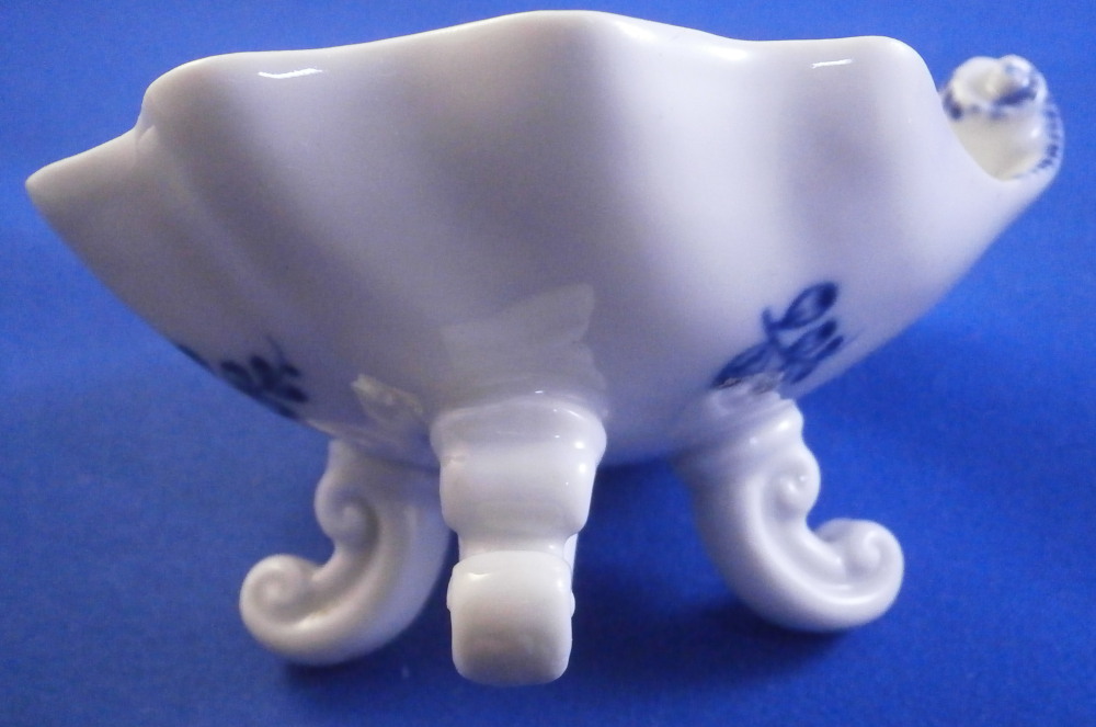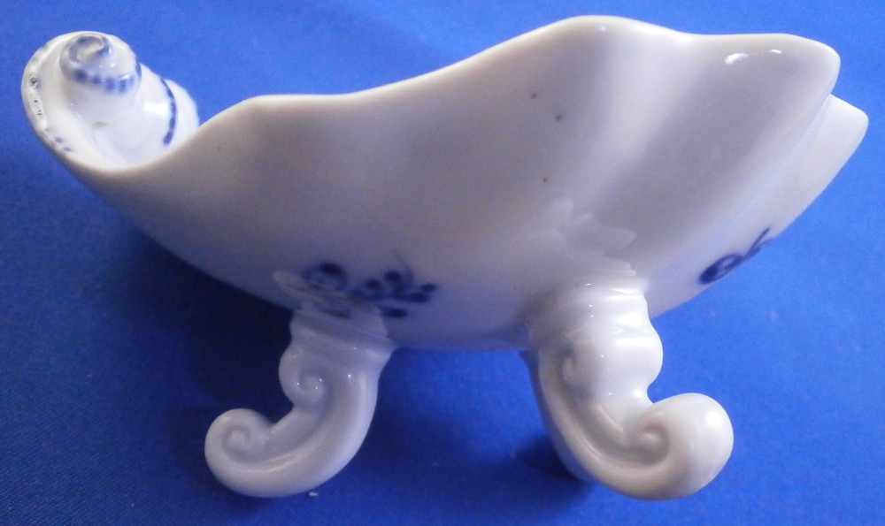 This is a really nice open salt dish made by Meissen in the late 18th century during the Marcolini period. . A really nice example in terms of shape and not one I ahve seen in this decoration before. The piece has a shell shaped dish on top sitting on three feet which looks stunning. The dish has a nice relief design to the paste and is hand painted with the famous strawflower design and even has some flowers to the underside as shown. The piece is marked with the under glaze blue crossed swords mark with the star below it as well as a number 14 as shown. The salt dish is 2 inches tall, 3.125 inches wide and 3.75 inches long. It is in perfect condition which is always a plus! Just a superb piece! Please email me for more information or other pictures.