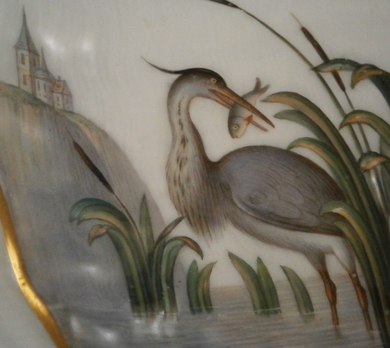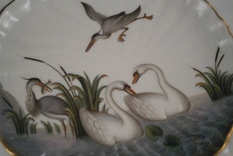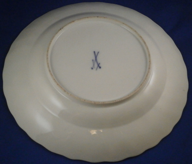 This is a plate from the famous Swan Service made by Meissen in the mid to late 19th century. Originally this service was made between 1737 and 1741 by Johann Joachim Kaendler and Johann Friedrich Eberlein. Made for Heinrich, Count von Brühl, the factory director, it was composed of 2,200 pieces modeled and painted in the Rococo style with such aquatic motifs as swans and water nymphs. It is regarded as the single finest table service ever made in porcelain. I have not owned a painted plate like this before and it is stunning! This plate here is the rare polychrome version with the painted raised design including swans and birds in the center and some gold trim. The piece is in perfect condition with some minor wear on some of the raised detail which is to be expected. The plate is marked with the large under glaze blue crossed swords mark as well as the usual impressed numbers of the period. The piece is 1.375 inches tall and 9.5 inches in diameter. Please email me for more information or other pictures.