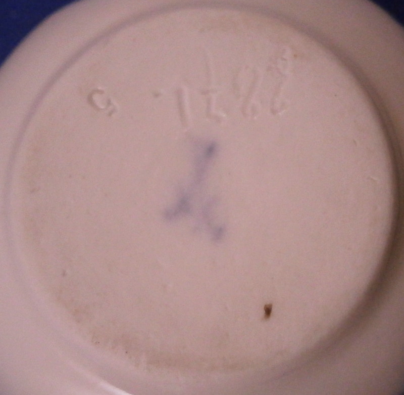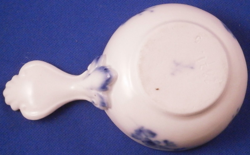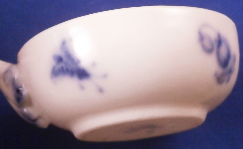 This is a fun piece of porcelain made by Meissen in the late 19th century. It is a lidded tealight holder for your teapot warmer or veilleuse - basically the carrying case for the little candle to keep your teapot warm. It is decorated with one of their under glaze blue flower and bug descorations with some gold highlights. The top of the lid even has a hole to keep the wick from bending when the lid is in place and it is not in use. Simple shape with a nice handle to one side. The main body of the tea light is marked underneath with the blue crossed swords mark as well as the usual impressed / incised numbers as shown. First quality. The dish and lid of the tea light holder are in perfect condition. The piece is about 1.5 inches tall with a diameter of 2.25 inches. The handle sticks out about 1.375 inches to one side. Please email me for more information or other pictures.