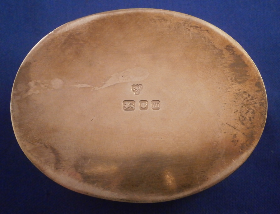 This is an interesting box! The lid was taken from a soft paste Mennecy snuff box that probably had the bottom damaged beyond repair. A really great idea! The porcelain top has a relief design to the paste on the outside and is hand painted with a typical floral arrangement while the underside of the lid has a smooth texture and is also painted with flowers. The rest of the box is Sterling silver and not too flimsy either. Simple lines to complement the porcelain perfectly. The two go perfectly together! The porcelain is not marked which is normal but there is not doubt it was made by Mennecy in the 18th century. The silver is marked both udnerneath as shown and along the edge of the lid. The marks show it was made by CJ Vander Ltd. from London in 1967. So even that part is vintage already. The piece is in great condition with some normal oxidation that just needs a quick polish if one wanted that. The porcelain has no issues either so it would make a superb pill or patch box! The piece is 1 inch tall, 2.875 inches wide and 2.25 inches deep. A nice size! Please email me for more information or other pictures.