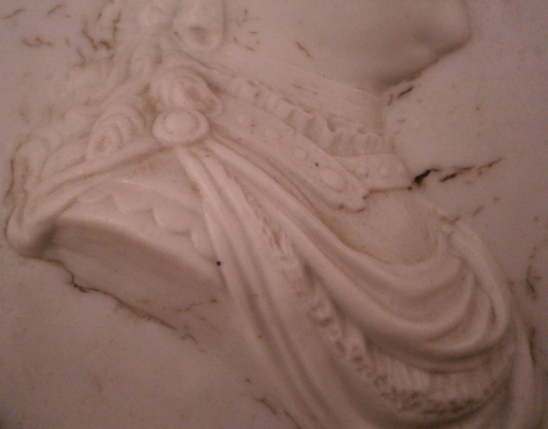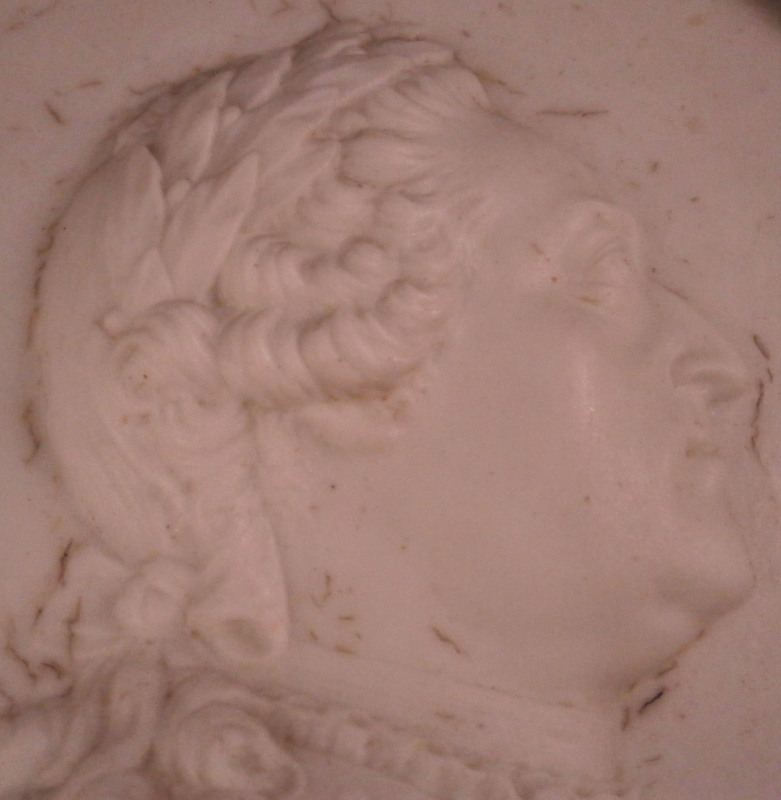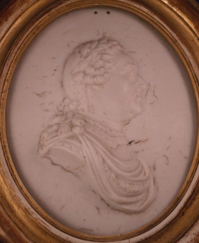 This is a really rare plaque of a profile bust of King Louis XV made by Mennecy in about 1760. Christie's sold one with the portrait also in biscuit but the background was glazed in blue which looked amazing! Here the entire plaque is done in biscuit / unglazed soft paste porcelain. Really nice and since there is not glaze to obscure all those fine details it is just superb! Two holes for hanging in the top of the plaque but someone added a frame to it a while back which also works. The plaque is in good condition with a bunch of firing flaws from when it was made but no chips, etc. It shows the difficulties they faces when making pieces like this! The frame looks OK but is pretty busted up and the plaque just taped into it so I would give it a new frame or just display it without one as it was meant to be. The entire piece with the frame in place is 10 inches wide and 11.5 inches tall. The plaque itself is about 6.75 inches wide and 8.5 inches tall. I don't see a mark on the underside but you can look up the one sold at Christie's which was marked and sold for over 10K! Please email me for more information or other pictures.