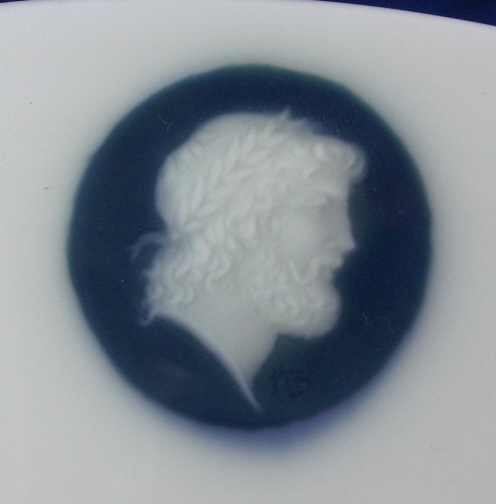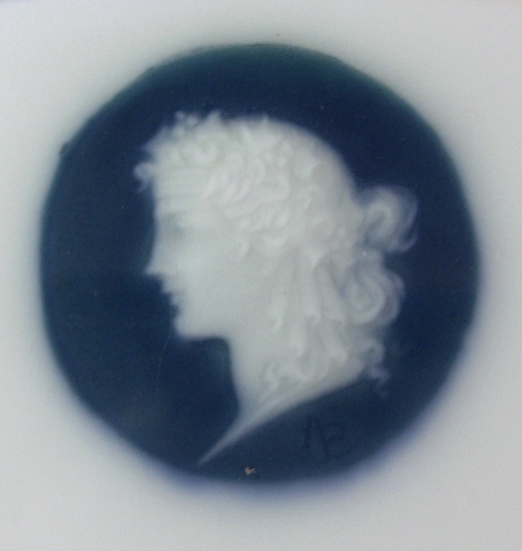 This is a third pate-sur-pate plate made by Minton in the mid 19th century. It has three different medallions of heads on a blueish background. One is signed A. Birks, the other two just AB. The plate is of a nice size being 10.25 inches in diameter and it is in perfect condition with a few light scratches. Marked underneath with impressed Mintons as well as some cyphers some of which are hard to make out. I have two other matching plates as well. Please email me for more information or other pictures.
