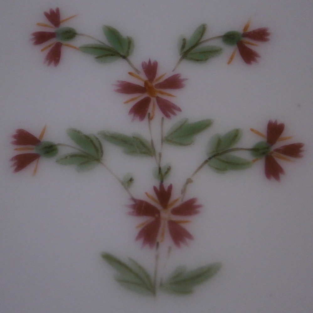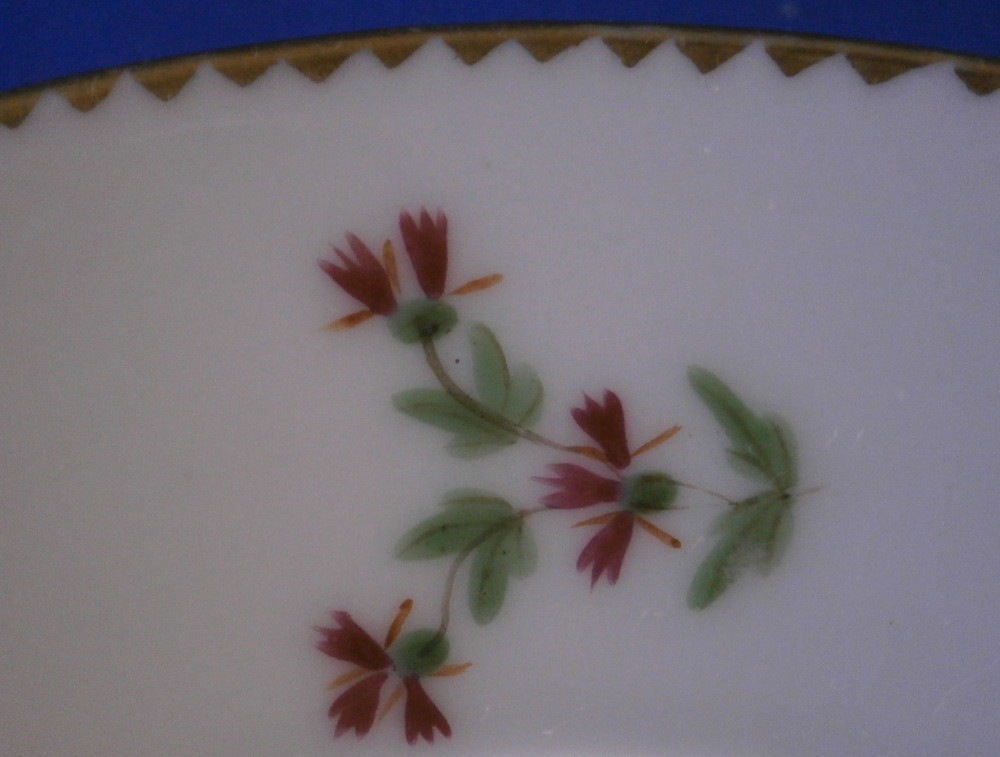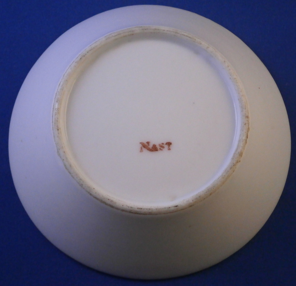 This is a nice saucer made by Nast in the late 18th century. Nast was one of the top Paris area makers of this period. The piece is hand painted with a red cornflower design including their red blossoms and green leaves and a gold trim along the edge. The red version is much harder to find than the more common blue cornflowers version since those were a favorite of Marie Antoinette and thus quite popular during the period. The saucer 1.125 inches tall and 5.125 inches in diameter. It is in superb condition with a touch of gold wear. Marked underneath with their red NAST mark as shown. Please email me for more information or other pictures.