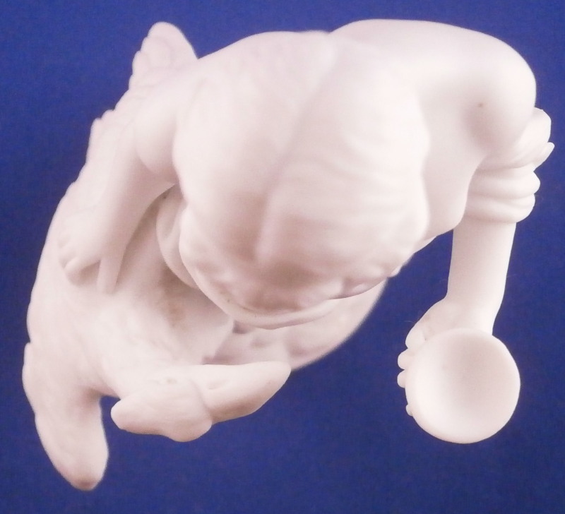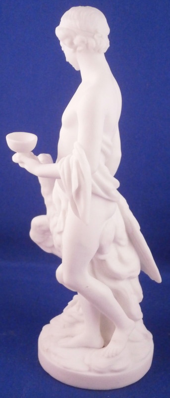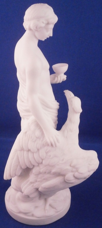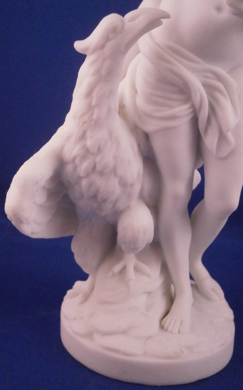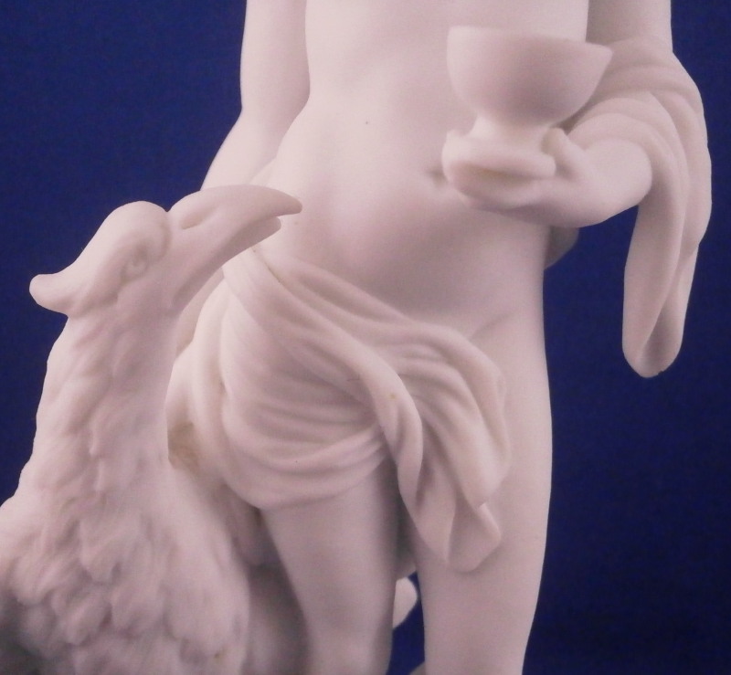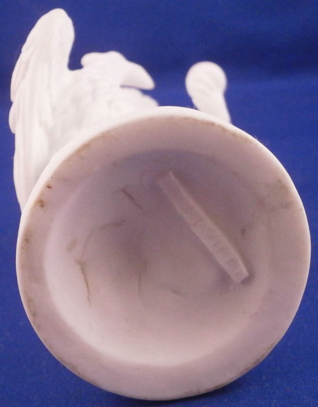 This is a superb figurine of a young gentleman with an eagle by his side made by Niderviller in the late 18th or early 19th century. It is most likely meant to represent Ganymede (a Trojan prince) and the eagle would be Zeus who abducted him to bring him to Olympus. Ganymede thus became immortal and the cup bearer of the gods. Eventually he was turned into the constellation Aquarius . This is the type of figurine Niderviller is famous for - the white biscuit, very detailed, fun pieces. The detail is amazing on this piece with the base being covered by a cloud, the feathers of the eagle and the cloth covering the mid section of the young man. The piece is quite heavy for its size being made of one solid piece of porcelain with no airholes - something quite typical of Niderviller. The figurine is in perfect condition which always helps :) And it is even marked underneath as shown which is not the norm. Most of their figures are unmarked. The figure is 6.5 inches tall, 2.75 inches wide and 2.25 inches deep. Please email me for more information or other pictures.