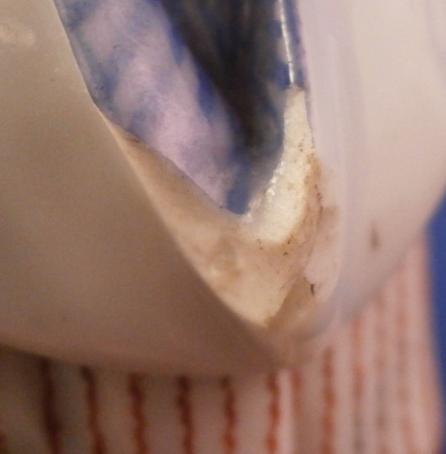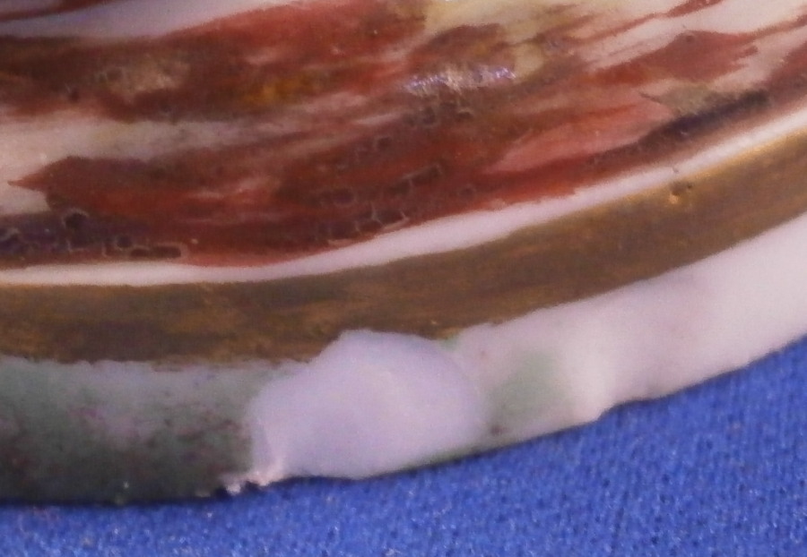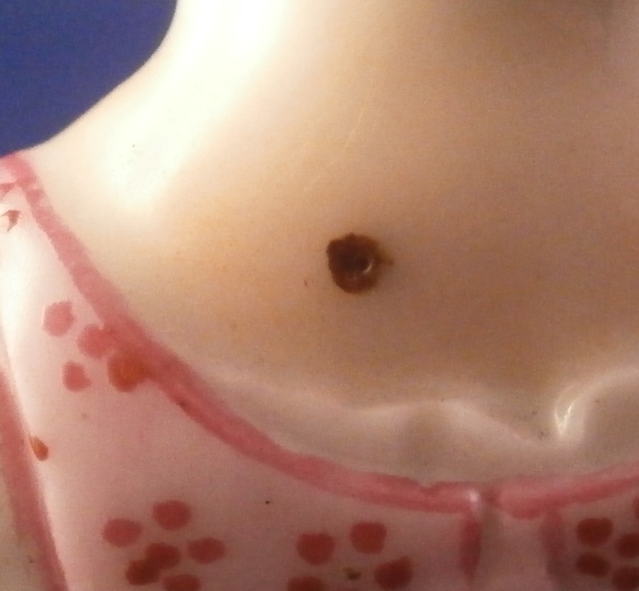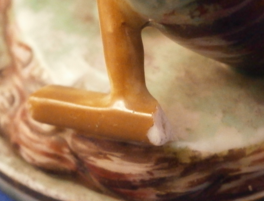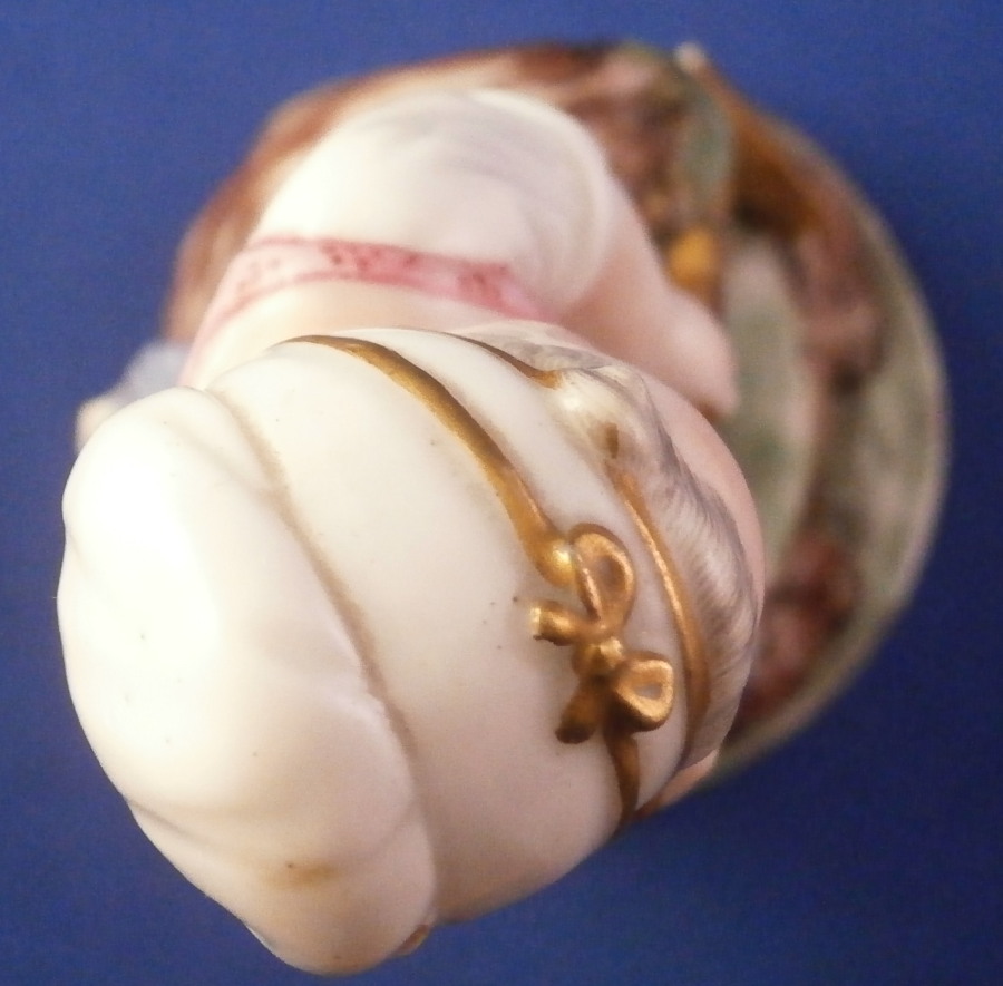 This is a figurine of a girl doing some yard work made by Niderviller around 1800. She is dressed in a colorfull outfit, wearing a typical cap of the period on her head and holding a rake in her hands. Quite a cheery loooking piece and it reminds me of Hoechst pieces of this period. There is the typical rock work as well as the gold trim on the base. The figure is nicely modeled and hand painted. The figure is in great condition with the one side of the rake bottom missing, two chips along the bottom back base edge and a chip to the apron in the back as shown. She displays superbly as none of this is distracting. As is the case with most of their figurines she is unmarked. The piece is 5.5 inches tall and the base has a diameter of 2.5 inches. Please email me for more information or other pictures.