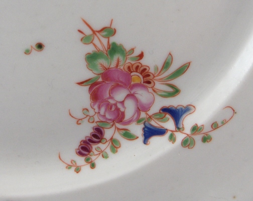 This is a plate made by Niderviller around 1780. It is handpainted with three larger flower arrangements and a few small leaves. Nice puce trim to rim. The plate is marked with the underglaze blue CC under the crown mark that many mistake for Ludwigsburg. Also an incised 6 or 9. It is 1.25 inches tall and 9.75 inches in diameter so a nice size. The plate is in good condition with some wear to one flower and the outside trim. Two small chips to the footring and two tiny chips to the rim which do not take away from the piece at all. Please email me for more information or other pictures.