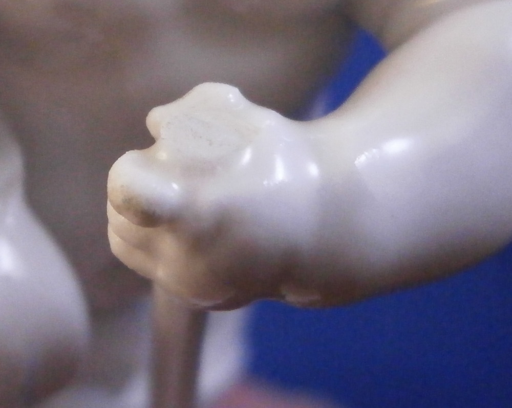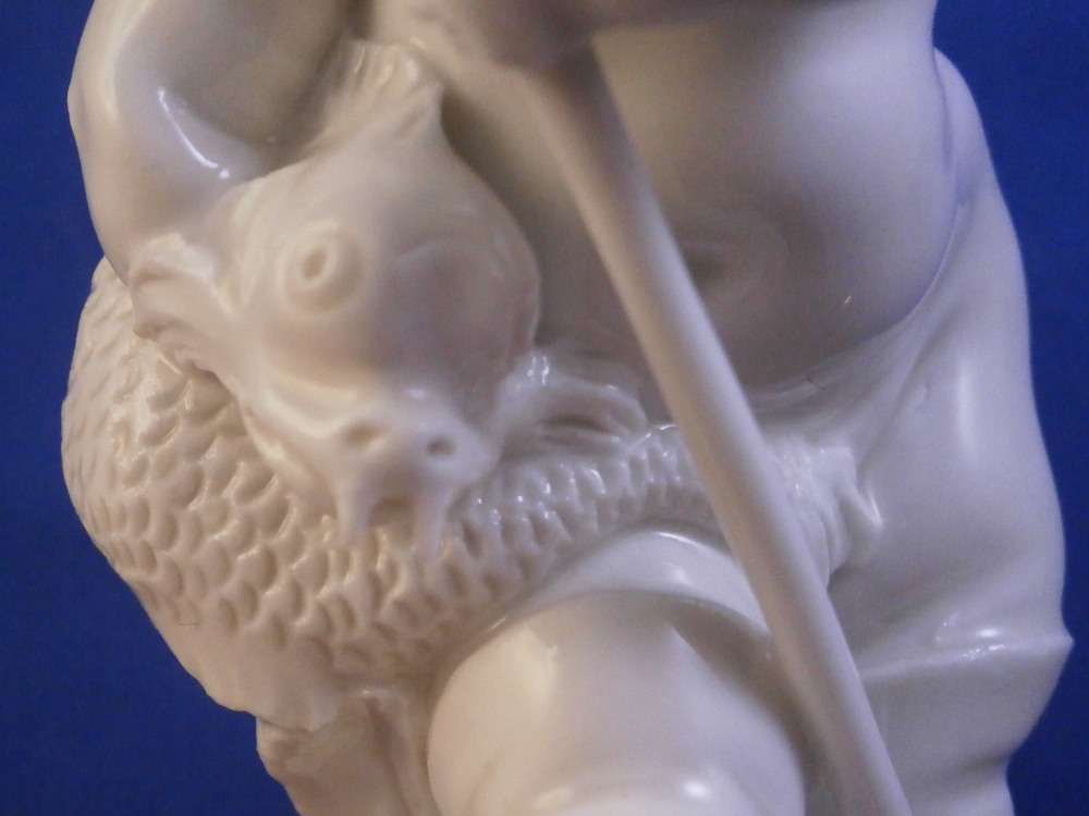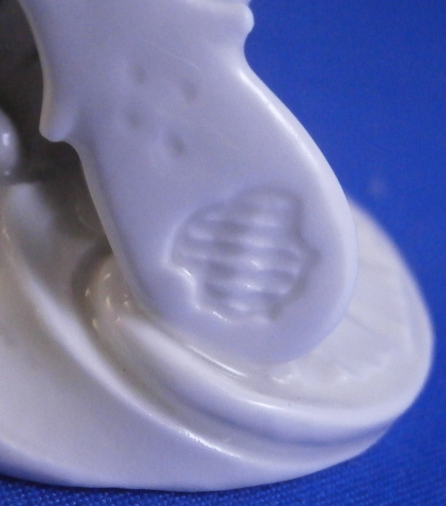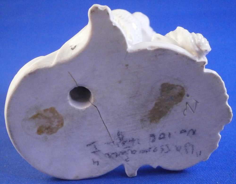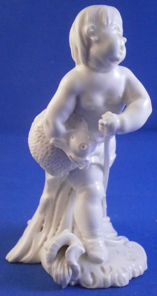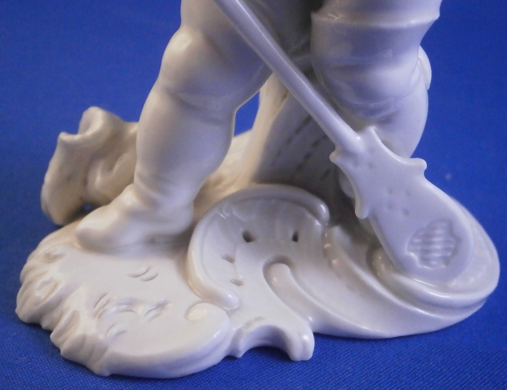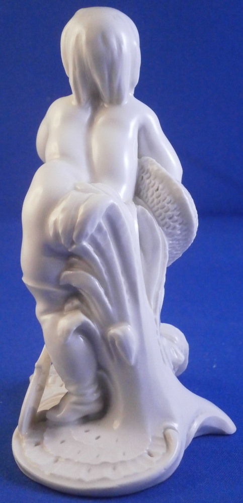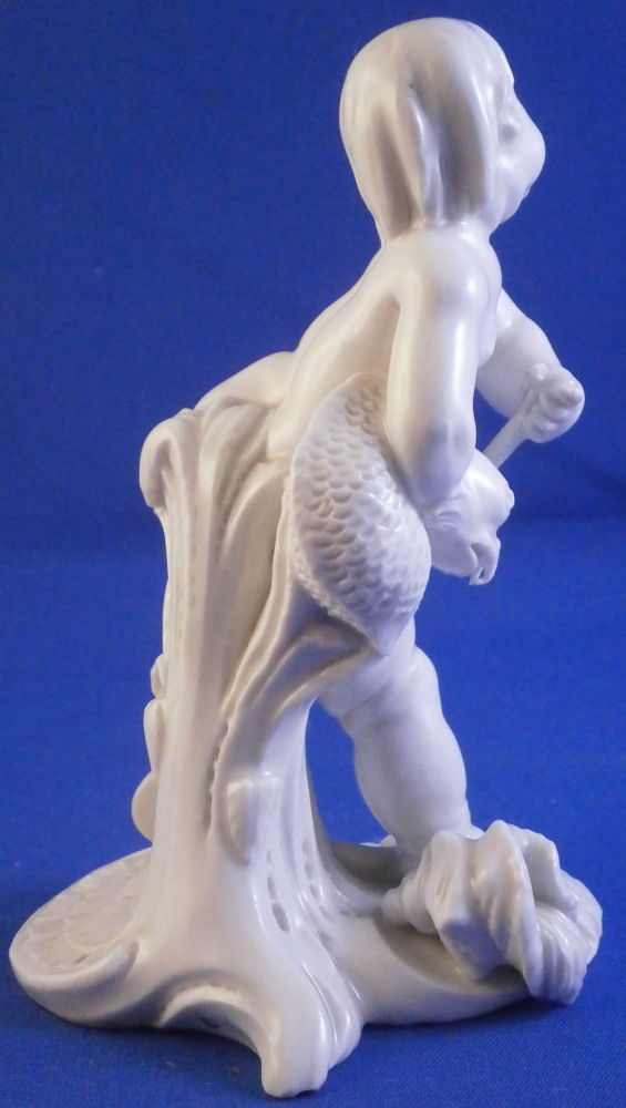 This is a rare figurine made by Franz Anton Bustelli in Nymphenburg in 1760 or possibly a touch earlier. I was first modeled during this time and looking at the larger hole underneath it is from this original period. Quite likely it was actually touched by the famous Bustelli himself which is super cool! Not something you come across ever really anymore! The figure is of the god Neptune and it is superbly modeled with lots of detail to it. He is holding a rudder in his left hand and an amazing fish in his right hand that covers his private section with its tail. There are some reeds to the back and a seashell or something along those lines on the base. It's a great looking piece! Amazingly the figure is in as good a condition as you will ever find with just the very tip of the handle in his hand broken off the top. Not obvious since it is flush with the hand. The modelling by Bustelli is unbeatable and to have an 18th century figure is quite rare these days! The figure is marked with an impressed shield mark to the rudder and a number or monogram to the underside as shown. The piece is 4 inches tall, 2.25 inches wide and 2.75 inches deep. Please email me for more information or other pictures.