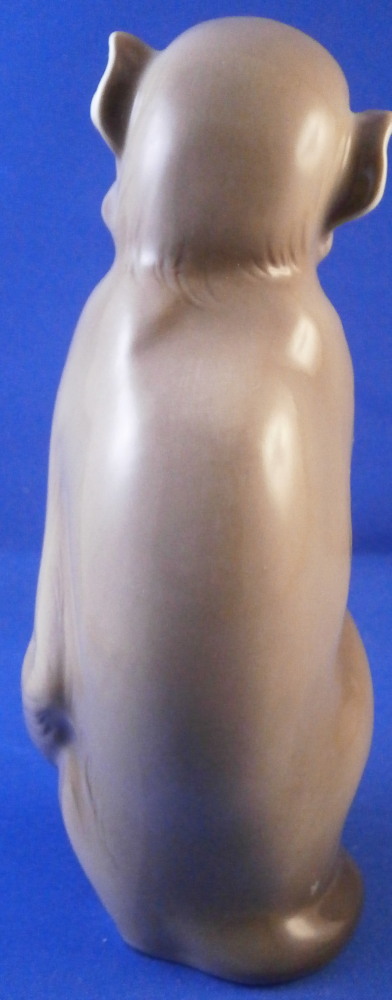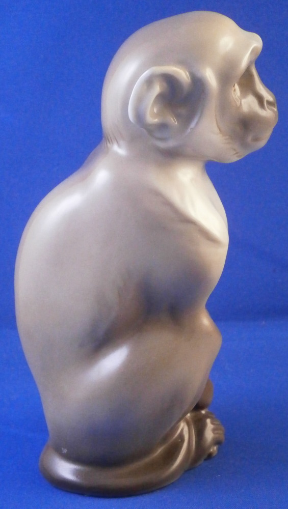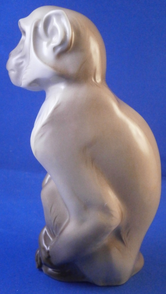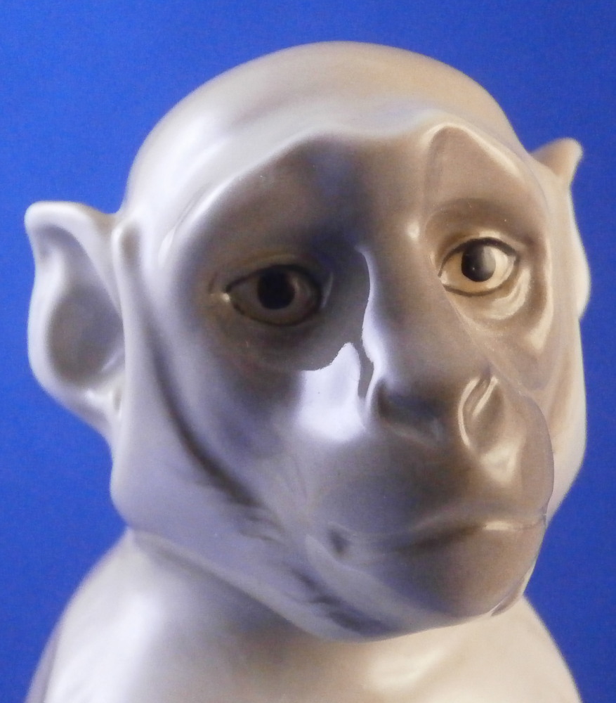 This is a really cute figurine made by Nymphenburg in the mid 20th century right after WWII. It is of a monkey that is sitting in a typical pose. The figure is modeled superbly and hand painted to perfection. It was originally designed by Theodor Kärner. The figurine is marked underneath with the impressed shield mark as well as numbers 191 over 4 as well as the green shield under a crown with the name Nymphenburg under it and Western Germany dating it to right after the second World War. Also signed by the artist in the back bottom DP in white. The piece is in perfect condition. The figure is 5.25 inches tall, 2.125 inches wide and 3 inches deep. Please email me for more information or other pictures.