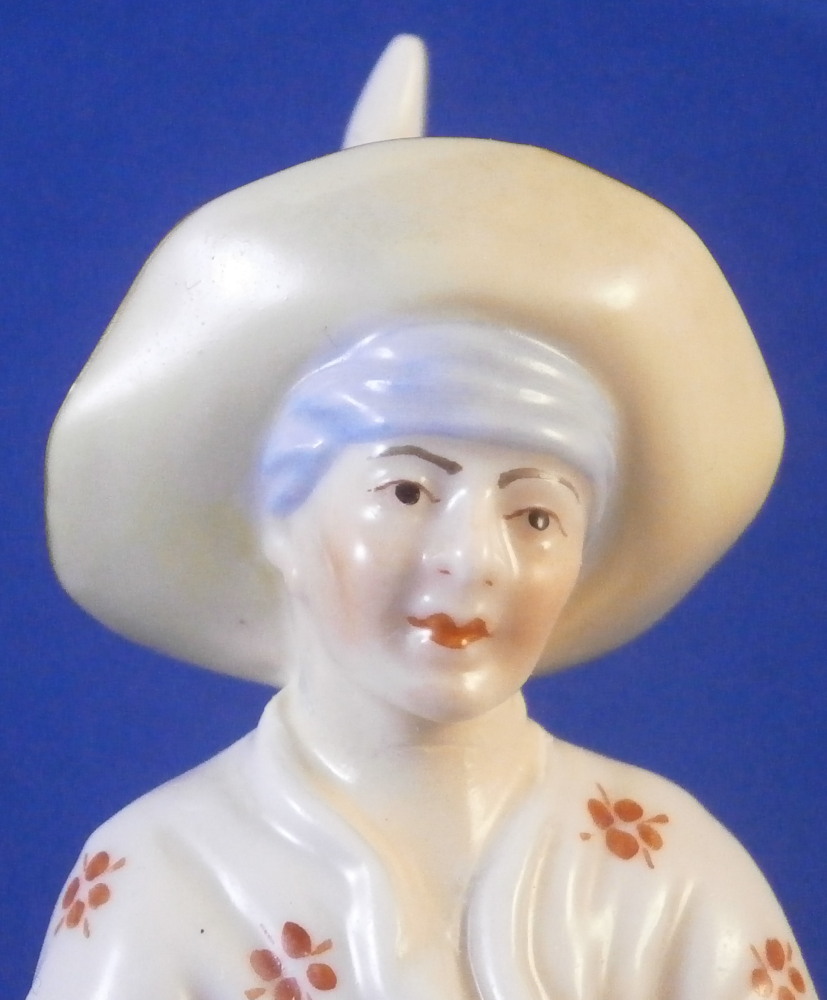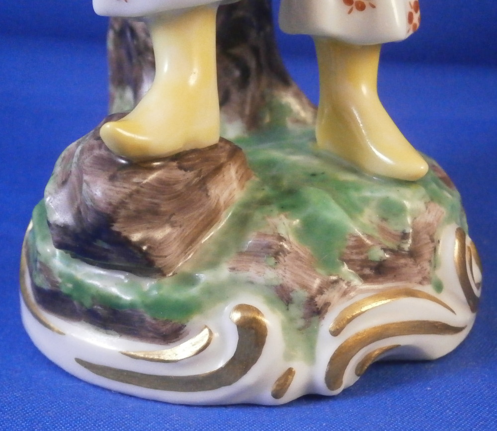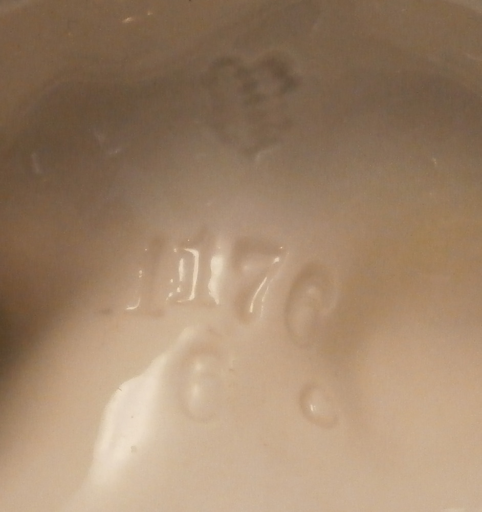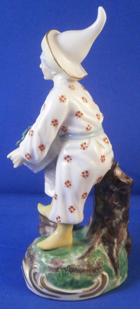 This is a figure of a Asian / Oriental gentleman made by Nymphenburg, from a Frankenthal model of the 18th century, in 1966. Nymphenburg made a whole series of these and they are really nice and one does not see them often at all, It is of a gentleman dressed in Oriental clothing holding reticulated basket filled with fruit and their leaves. I easpecially like his pointy hat. He is standing on a nicely done base with some gold scrolls to the edge. Off course based on an 18th century Frankenthal model hence the CT mark as well as the Nymphenburg mark. The figure is 5.25 inches tall, 2.25 inches wide and 2.375 inches deep. Marked with the impressed shield mark to the underside with the numbers 1176 over 6 c I think - a bit hard to make out. Plus the CT monogram under the crown as well as the year mark for 1966 in under glaze blue. The figurine is in perfect condition which is always a nice bonus! Please email me for more information or other pictures.