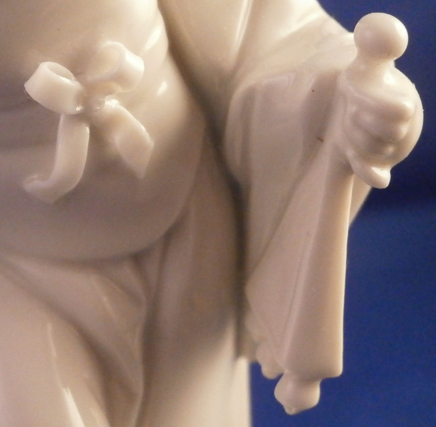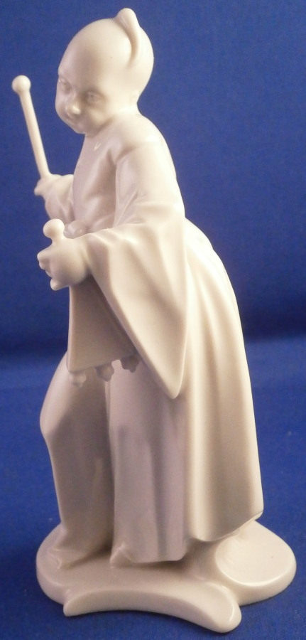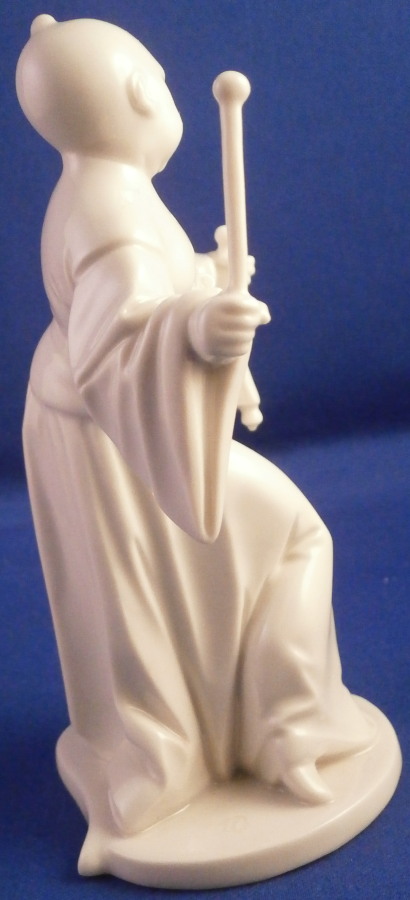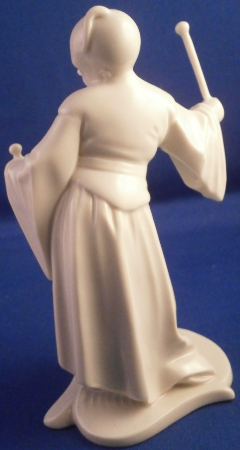 This is a figurine of a musician playing the chimes (a nicer name in German is Glockenspiel ) made by Nymphenburg in the late 20th century. It comes from a series of 17 or 18 figurines I think - this being one of the harder to find pieces especially in perfect condition due to obvious reasons. Originally it was off course modelled by Bustelli in the 18th century. This is the blanc de chine version but this also comes in a painted version though one rarely ever sees it. I own a few other pieces from this series as well and they are probably my favorite figures besides the commedia dell'Arte off course. The figure has the monk looking young gentleman dressed in a flowing robe with a bow in the front holding the percussion mallet and in the other one the chimes. He is standing on a typical base. A really fun piece that is stunning and elegant looking. This piece is amazingly modeled and one can see why Bustelli is still considered the greatest modeler of all time. The figurine is 4.75 inches tall, 2.875 inches wide and 2 inches deep. It is in perfect condition! The figurine is marked with the impressed shield mark to the top side of the base and underneath as well as the impressed numbers 388 and an incised 31. Please email me for more information or other pictures.