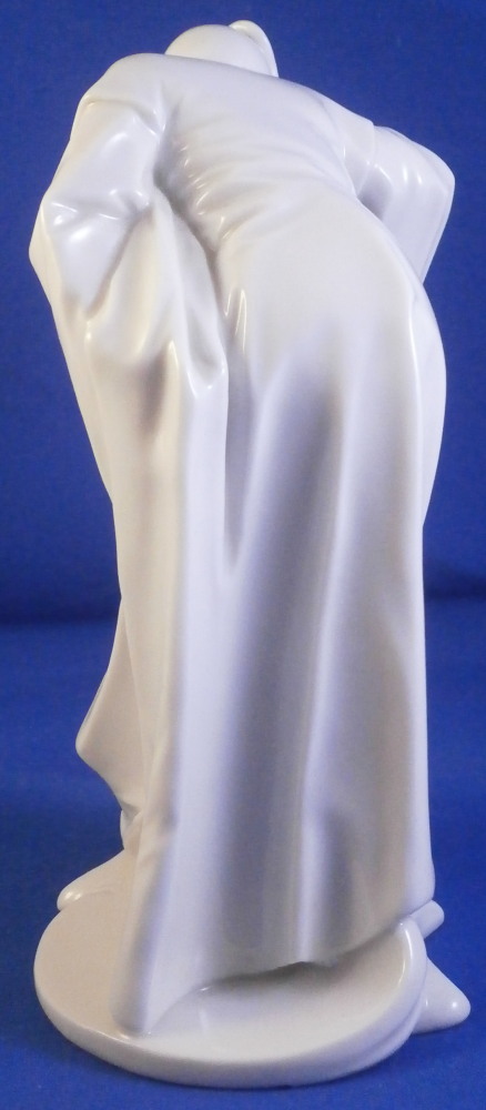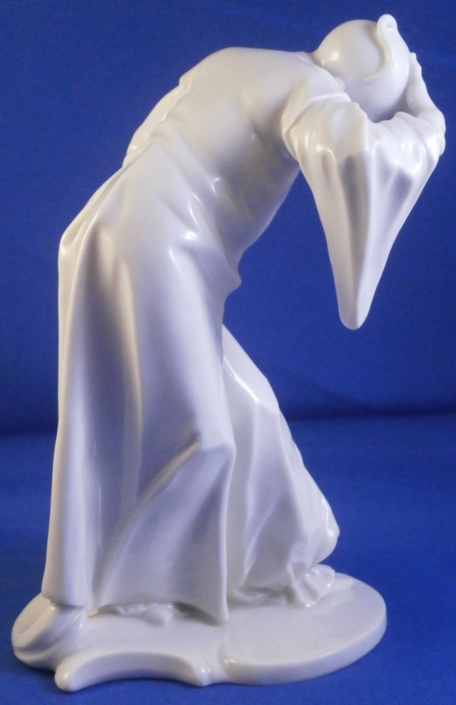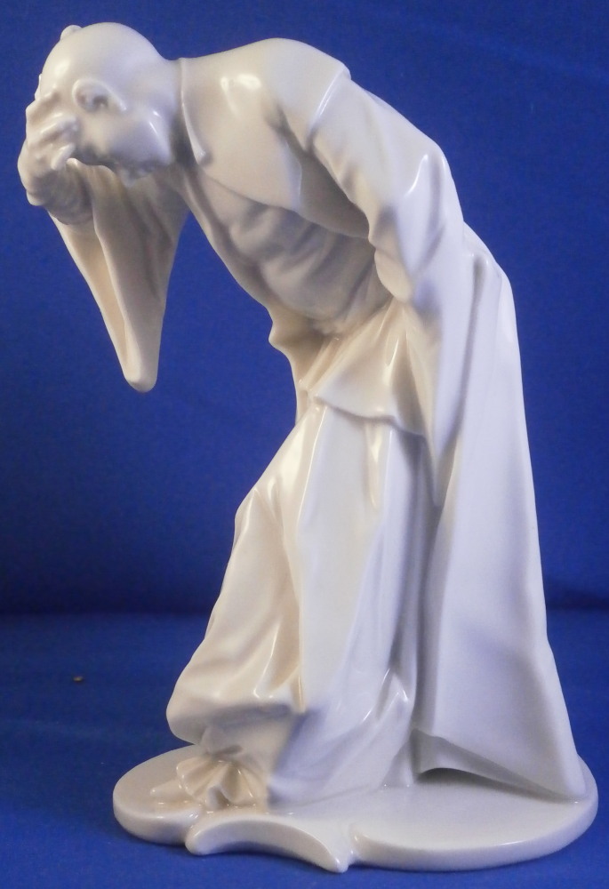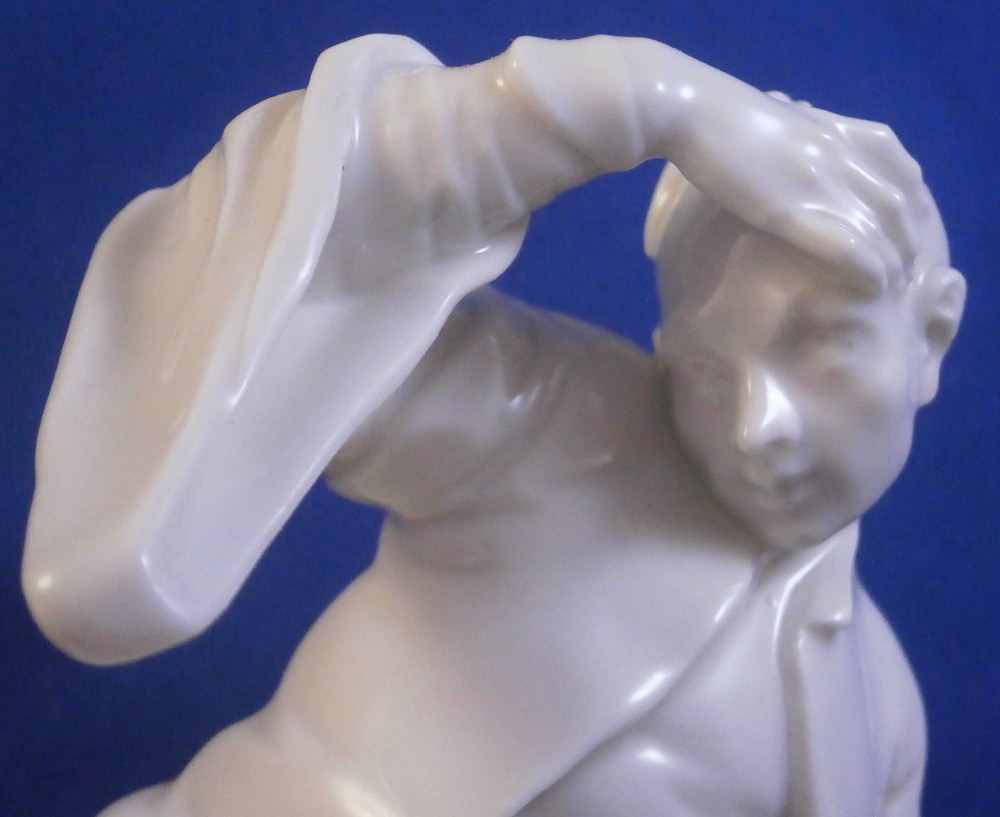 This is an amazing figurine of a monk made by Nymphenburg in the beginning of the 20th century. I have owned the colored version a few times and it is one of my favorites but this one here is the blanc de Chine version left in the white to show off all that amazing modeling that Bustelli did on his figures in the 18th century . He was amazing! The monk is bowing down with one hand on his head and the other by his side. The figure is amazingly modeled as Bustelli is still consdered the greatest modeler of all time. The monk is wearing a flowing outfit with lots of details. Simple yet full of movement and elegance. No other artist even came close to Bustelli! Truly a superb figurine! It is 5.75 inches tall, 2.625 inches wide and 3.625 inches deep. He is in perfect condition! The piece is marked with the impressed shield mark on top of the base and underneath as well as the impressed numbers 154 and 0 as shown. Please email me for more information or other pictures.