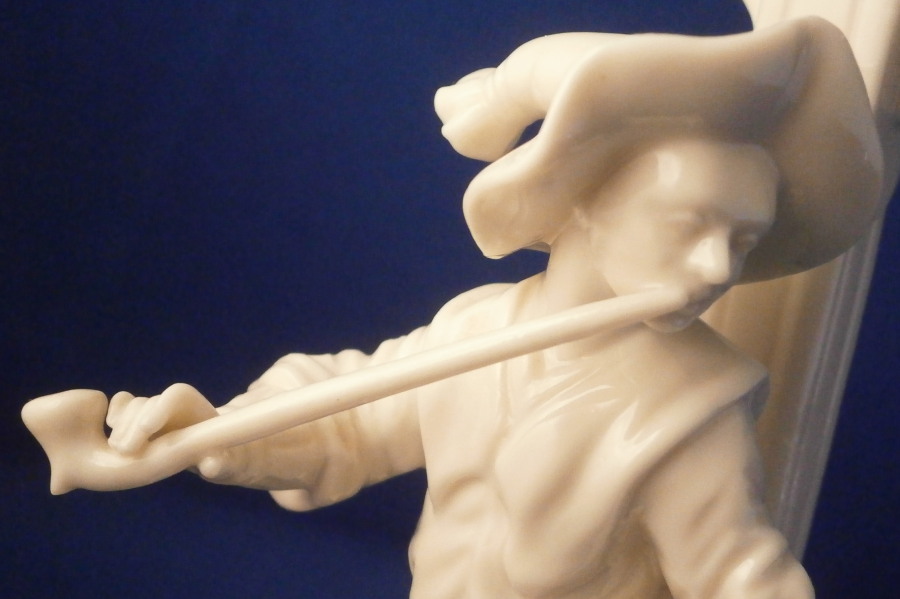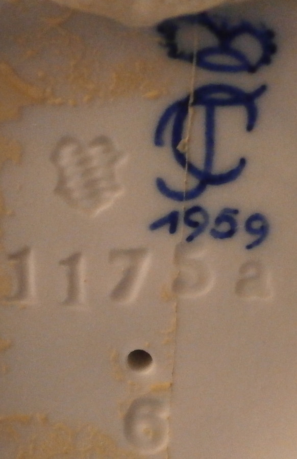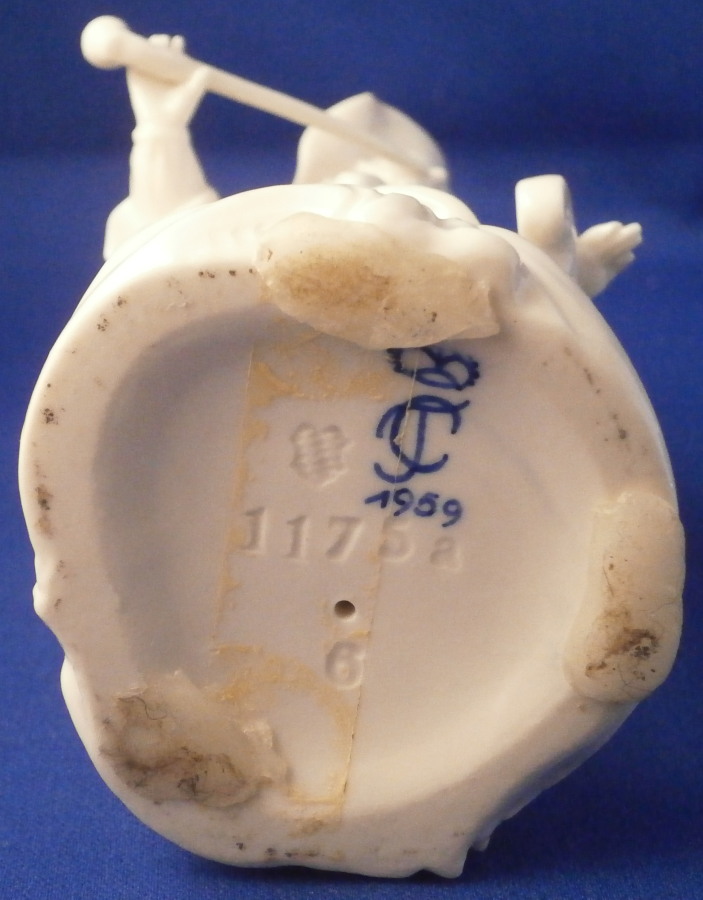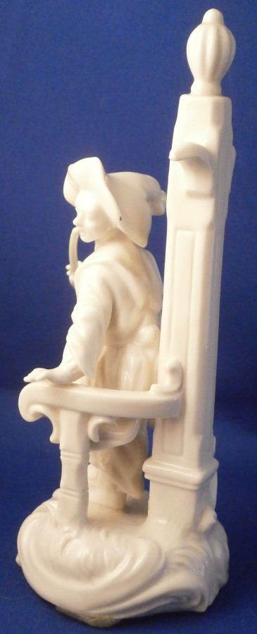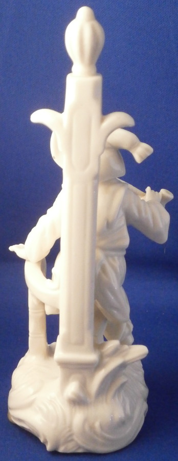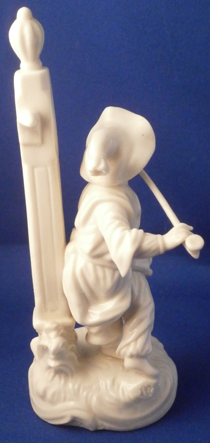 This is a figure of a Asian gentleman made by Nymphenburg in 1959. Nymphenburg made a whole series of these and they are really nice and one does not see them often at all. This one here is a gentleman smoking a very long pipe while dressed in a nice outfit and standing on a nicely done base with some sort of post with a railing to his side. Off course based on an 18th century Frankenthal model hence the CT mark as well as their mark. This is the white version which I always like because it shows of the detailing of the porcelain but I do also ahve the painted version listed on the site. The figure is 5.755 inches tall, 2.25 inches wide and 2.25 inches deep. Marked with the impressed shield mark by his foot as well as underneath, the numbers 1175a over 6 and the CT monogram under the crown as well as the year mark for 1959. The figurine is in perfect condition which is always a ncie bonus! Please email me for more information or other pictures.