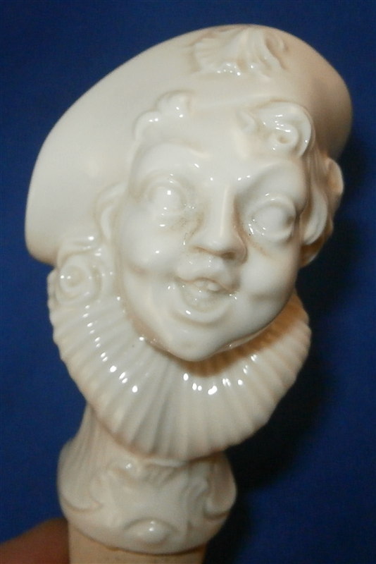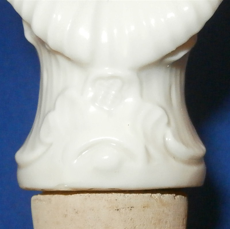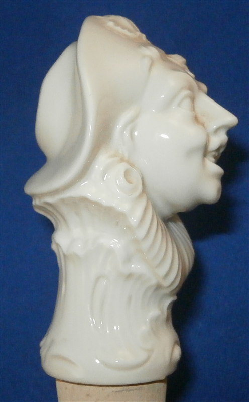 This is a hard to find figural bottle stopper made by Nymphenburg in the 20th century. Originally designed by Bustelli which can be seen easily - looks like a Jester's head to me with a decorative column underneath. Just a fun piece to look at. The porcelain as well as the cork are in perfect condition! Marked on the front under the collar with the impressed shield mark and if you look closely you can see the same mark as well as some numbers on the udnerside where the cork is attached. The porcelain part is 3 inches tall, 1.75 inches wide and 1.625 inches deep. The cork part is an additional 1.25 inches long and it is 0.875 inches in diameter at the top. Please email me for more information or other pictures.