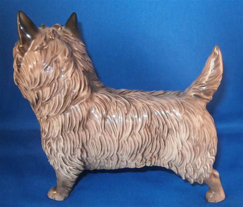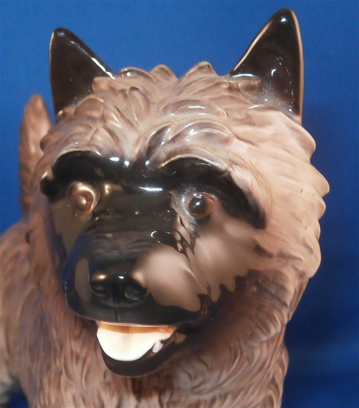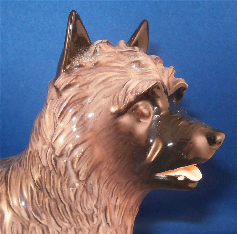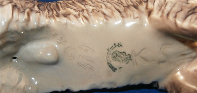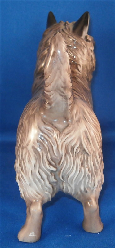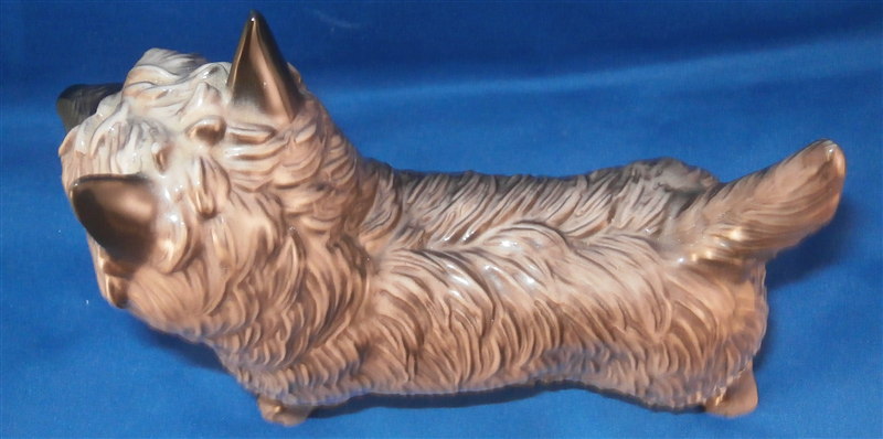 This is a figurine of a dog made by Nymphenburg during the original period in the early 20th century. It is a Cairn Terrier and he is superbly modeled and handpainted. Not a model one sees often especially from this period! The dog is 5.75 inches tall, 2.25 inches wide and 6.5 inches long. It is marked with the impressed shield mark underneath with the number 699 over 3 incised underneath it. Also marked with the green shield mark with the word Nymphenburg and the artist initials KS for Konrad Schmid. Also signed by the artist that painted him on his left back leg as shown. He is inperfect condition. Please email me for more information or other pictures.