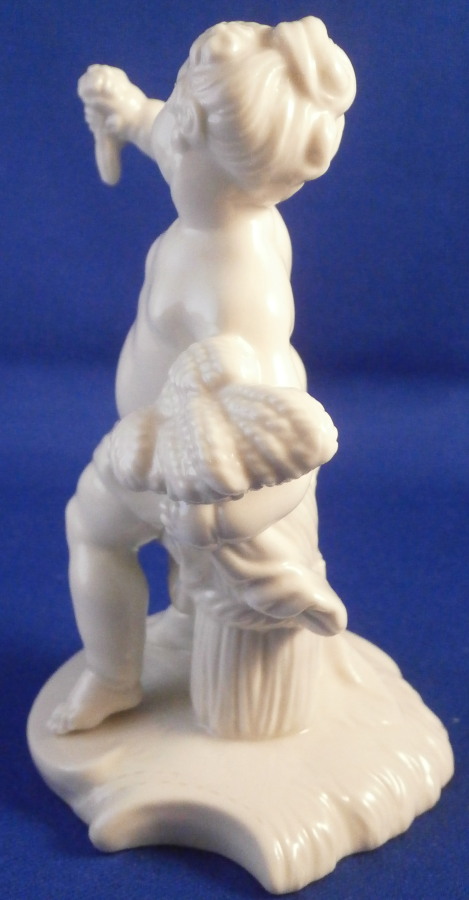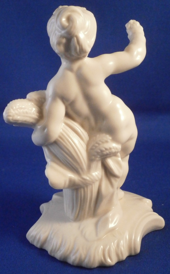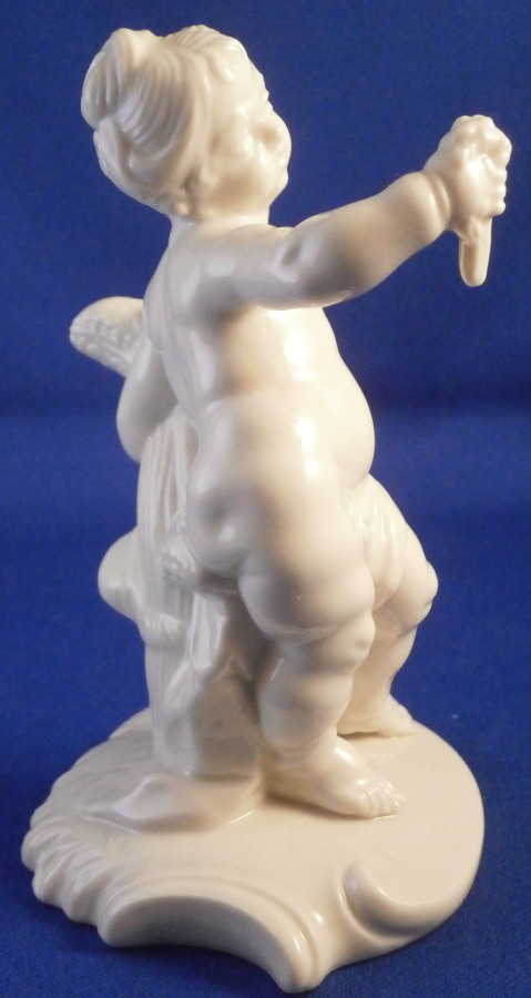 This is a figurine of the goddess Ceres made by Nymphenburg in early 20th century. Floral is the goddess of the growth of food plants and is meant to symbolize Summer in this case here. The figure is of a putto holding a flower in her right hand while holding a wheat sheaf in her left hand. She is standing on a typical base. The figurine is superbly modeled with lots of fine details - originally by the famous Bustelli in the 18th century but this one being a later redo. The figurine is about 4.25 inches tall, 2.75 inches wide and 2.5 inches deep. She is in perfect condition. The figurine is marked underneath with the impressed shield mark as well as the impressed model number 265 and 3 as shown. Please email me for more information or other pictures.