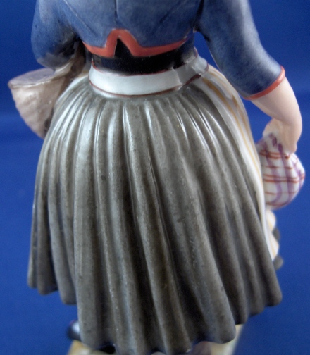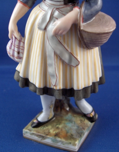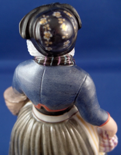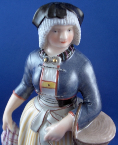 This is a figurine of a lady in a traditional outfit from Dachau made by Nymphenburg around 1855. This means she is from the original period she was first designed in and thus very rare. She is handpainted with extreme attention to detail as all Nymphenburg pieces are. She is marked with the impressed shield mark without the star just like the one in the Nymphenburg Baeuml collection book as well as a red painters mark. The figure is 5.625 inches tall, 2.625 inches wide and 2.375 inches deep. She is in perfect condition. Please email me for more information or other pictures.